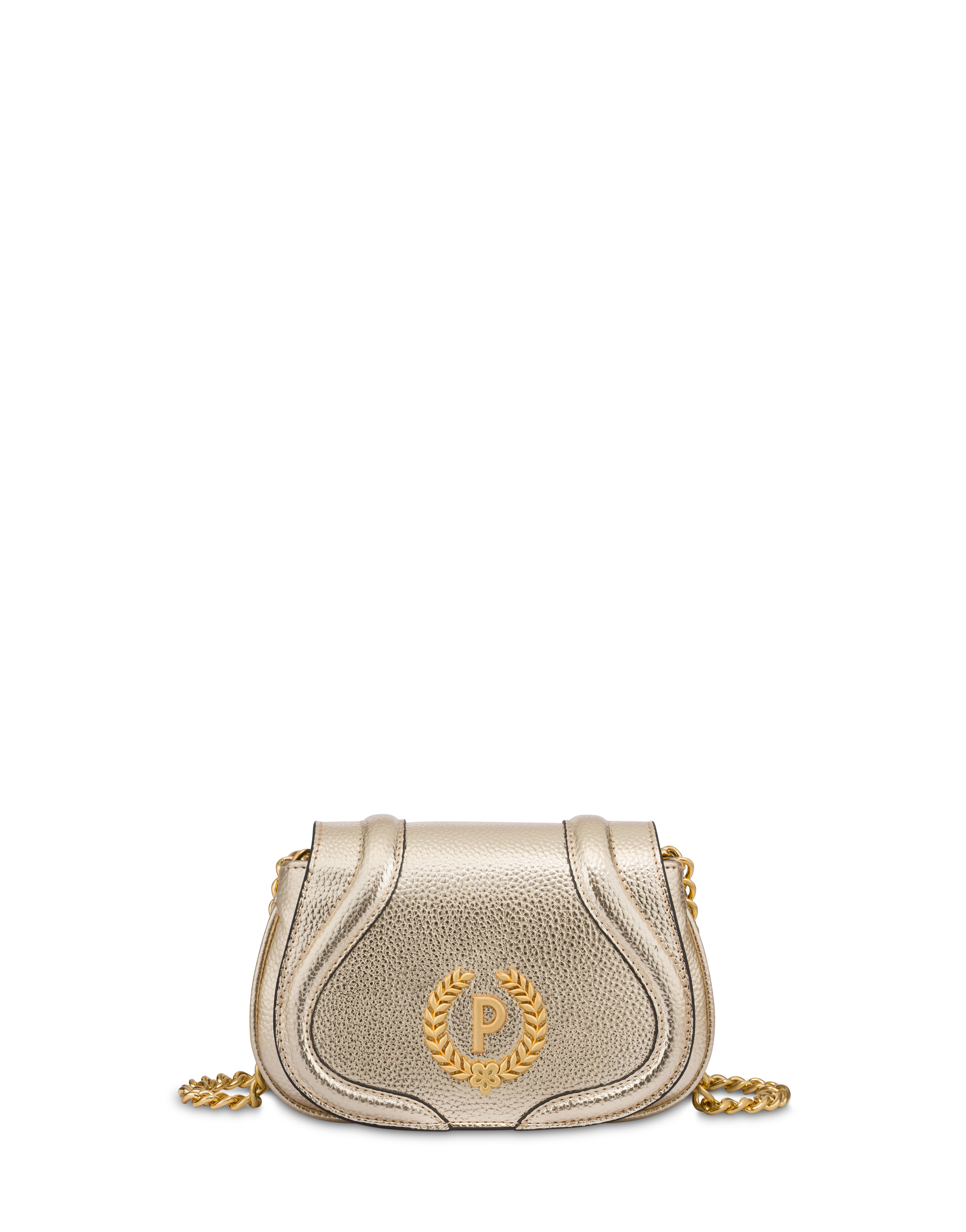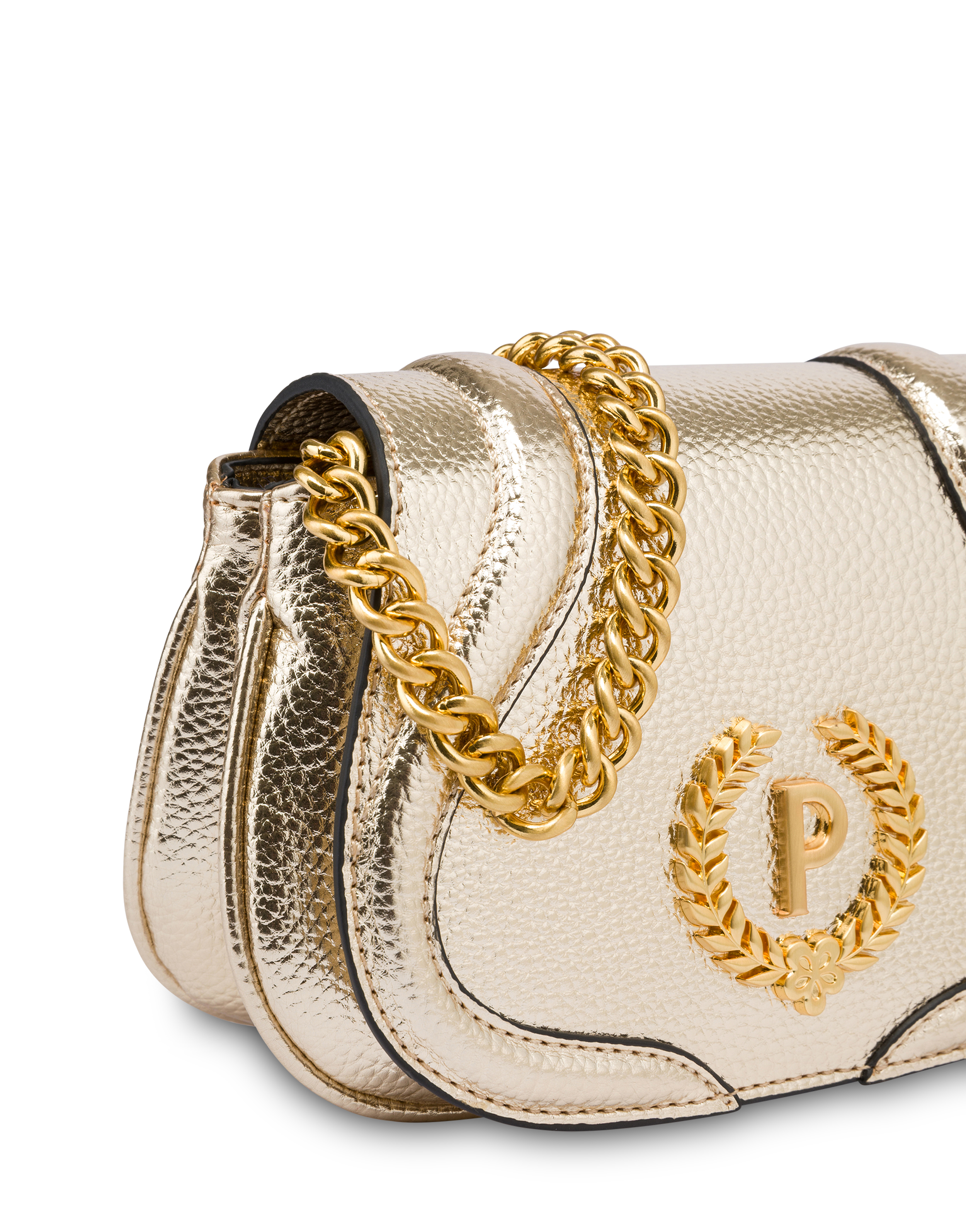 Die Cross Body Bag Moonlight ist eine Hymne an die moderne Weiblichkeit. Sie ist aus laminiertem Granat gefertigt und reflektiert das Licht mit dezenter Eleganz. Das unverwechselbare Stilsymbol – das farblich passend emaillierte Logo „P Alloro“ – fügt sich harmonisch in die Oberflächen aus satiniertem galvanischem Gold und Nickel ein und schafft ein raffiniertes Spiel der Kontraste, wobei die schwarzen Rippen das Profil der Tasche entscheidend definieren.