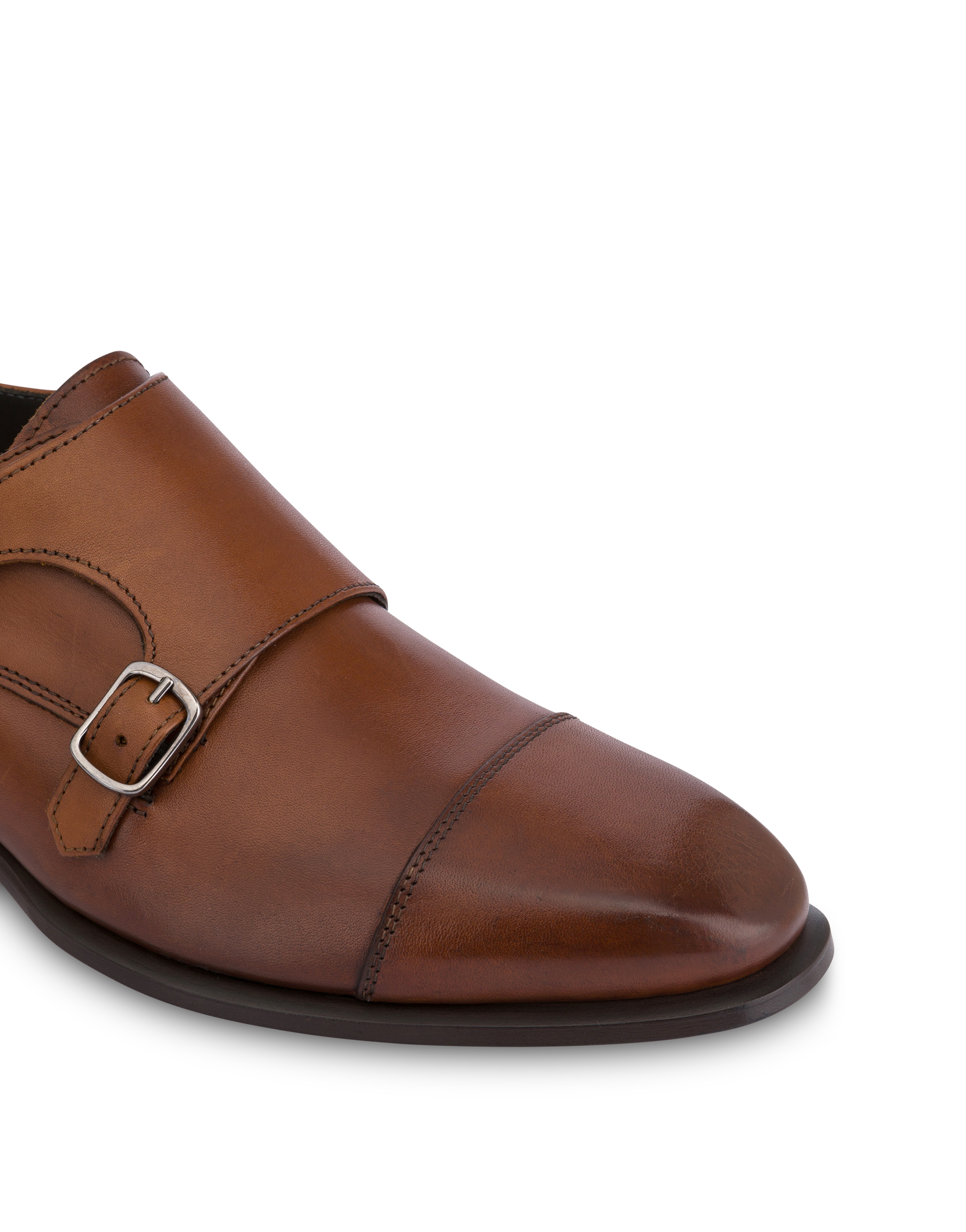 Double Monk aus Kalbsleder mit gewachster Bürstung an der Spitze, ein ausgeklügelter und raffinierter schattierter Farbeffekt. Die Ledersohle mit Gummieinspritzung sorgt für Haltbarkeit und Grip. Die abgerutschte Spitze verleiht einen Hauch von Klasse. Ideal für elegante Anlässe, eignet er sich auch für lässigere Looks.