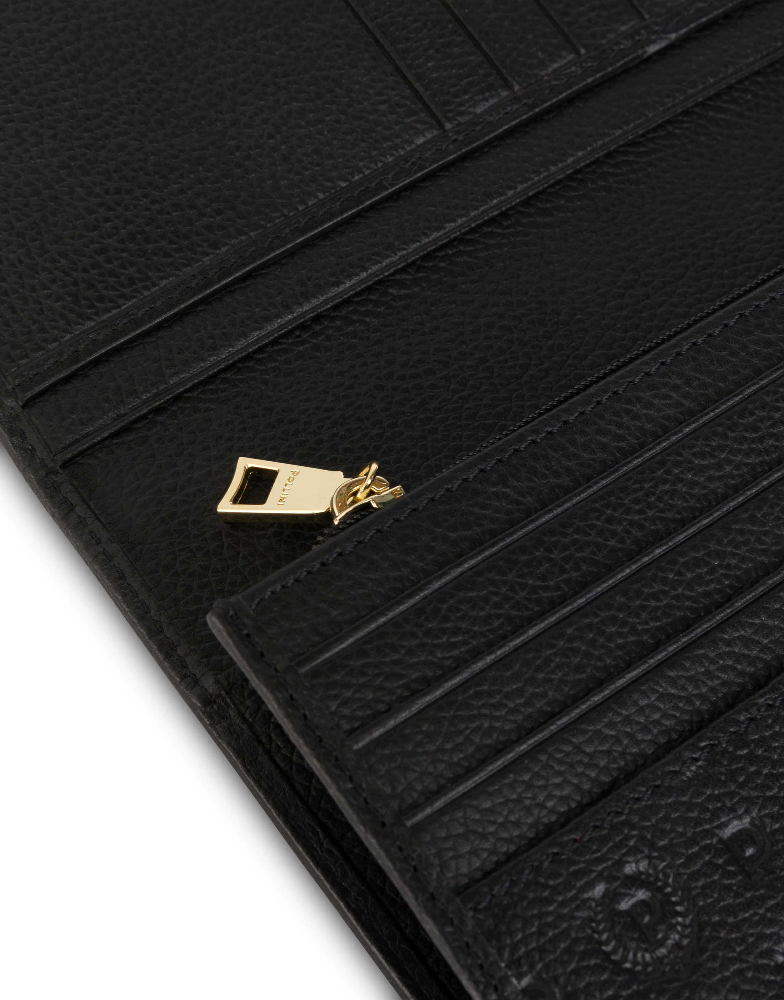 Geldbörse Continental aus weichem Kalbsleder für die neue Heritage Logo Embossed Linie. Reißverschluss, zentrales Fach mit Reißverschluss, 16 Kartenfächer und zwei Banknotenfächer. Die zeitlose Eleganz, die die Heritage-Kollektionen seit jeher geprägt hat, wird durch das ikonische Monogramm mit dem P und dem heiß auf das Leder geprägten Lorbeerkranz unterstrichen.