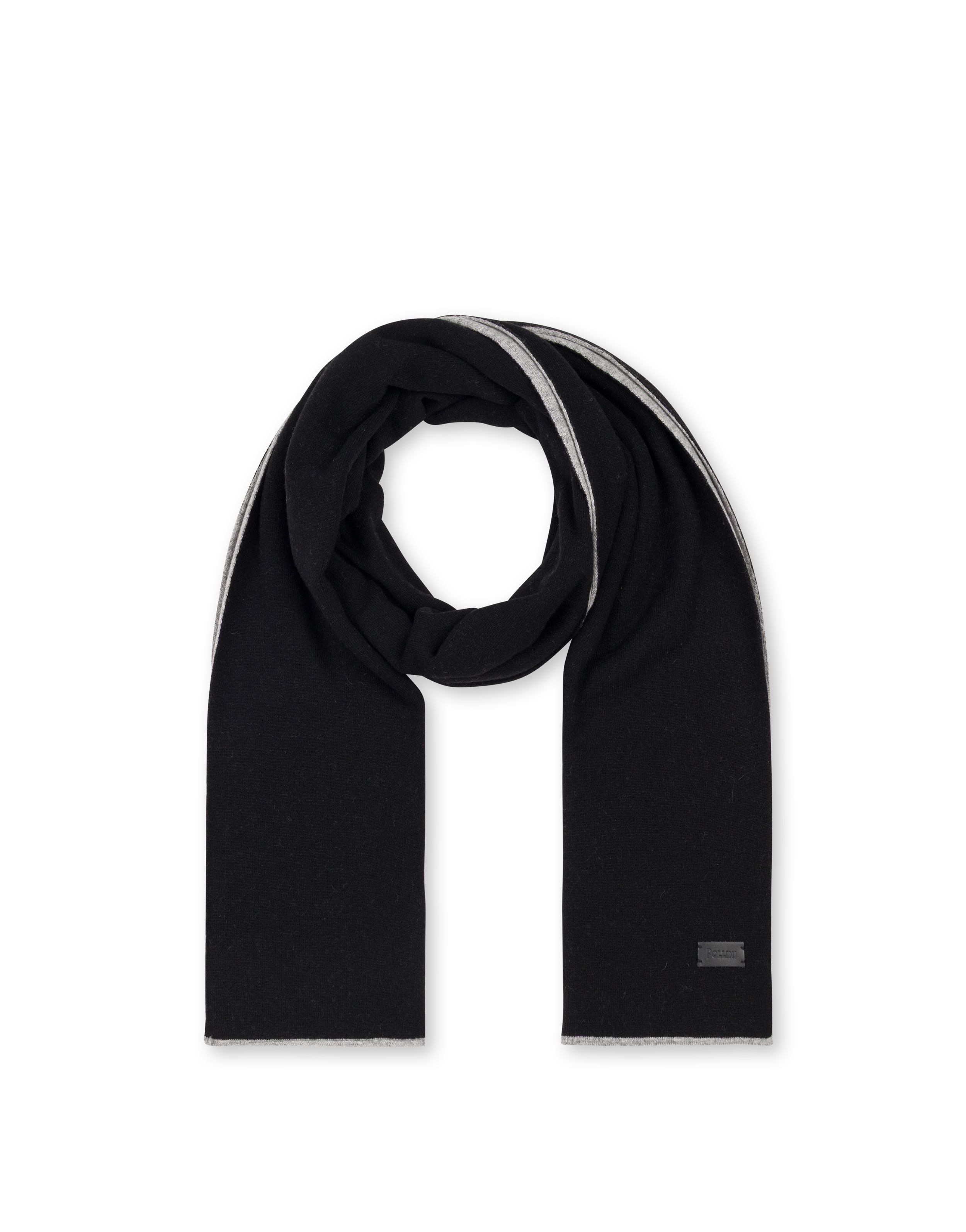 Schal aus zweifarbiger Wollmischung. Die Vorder- und Rückseite sind in kontrastierenden Farbtönen gehalten. Leder-Logo-Label am Rand.