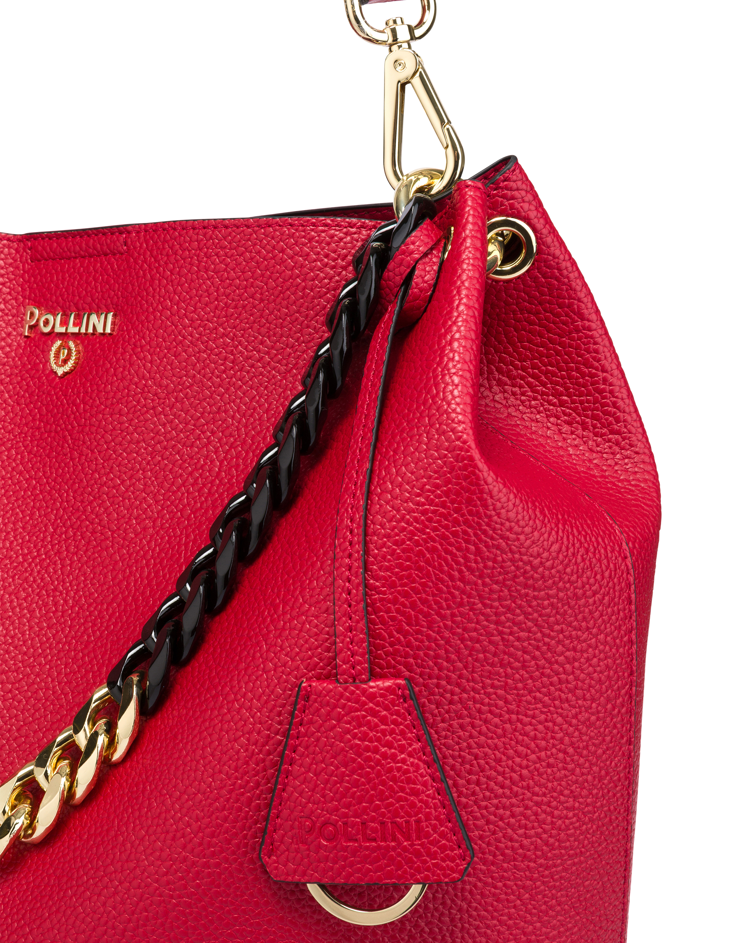 Zeitlose Eleganz und unverwechselbare Details definieren die Shoulder Bag Darlene, eine Stil-Ikone der Pollini-Kollektion. Diese Tasche zeichnet sich durch eine zweifarbige Maxi-Zierkette aus, die eine moderne und entschlossene Note verleiht und Funktionalität und Raffinesse vereint. Ausgestattet mit einem praktischen Innenbeutel und einem passenden Clochette-Schlüsselanhänger ist sie das ideale Accessoire, um sowohl Alltags- als auch Abendlooks mit einem raffinierten Akzent zu vervollständigen. Ein vielseitiges und raffiniertes Stück, das für diejenigen gedacht ist, die sich mit Stil hervorheben möchten.