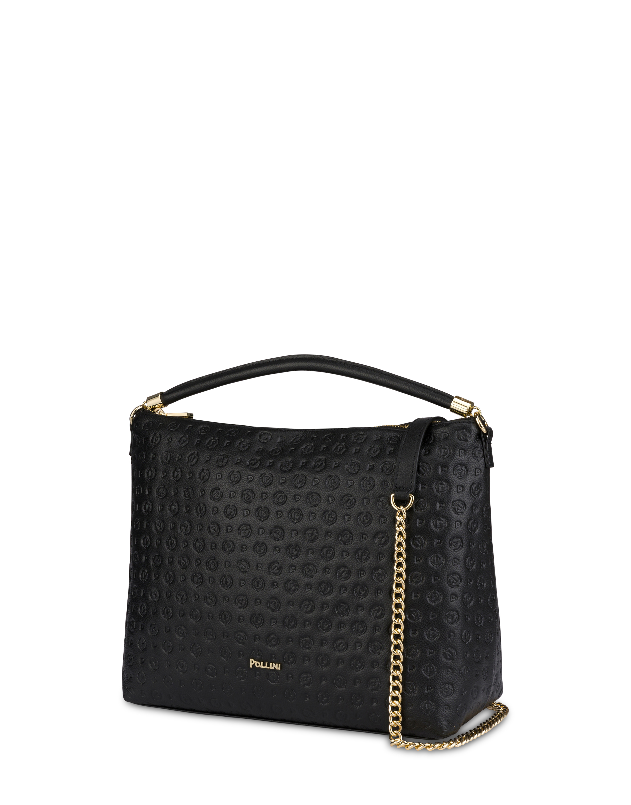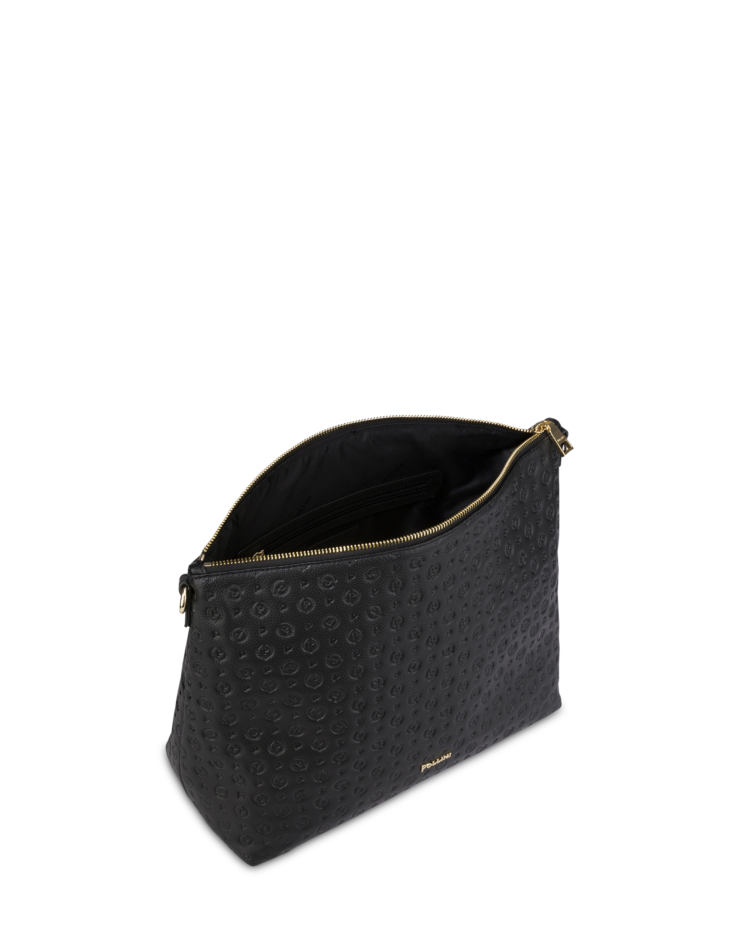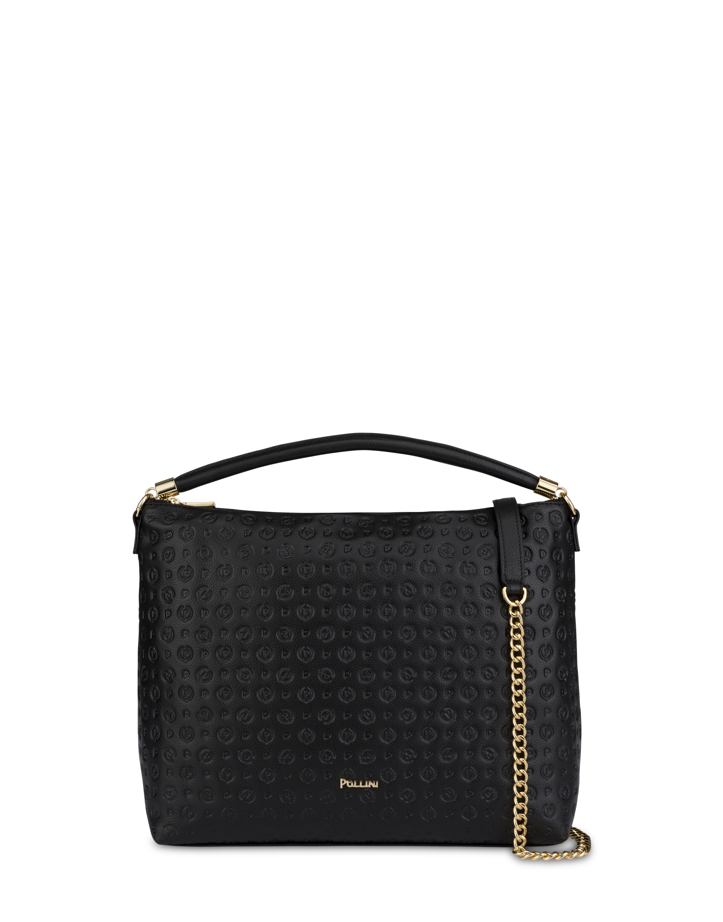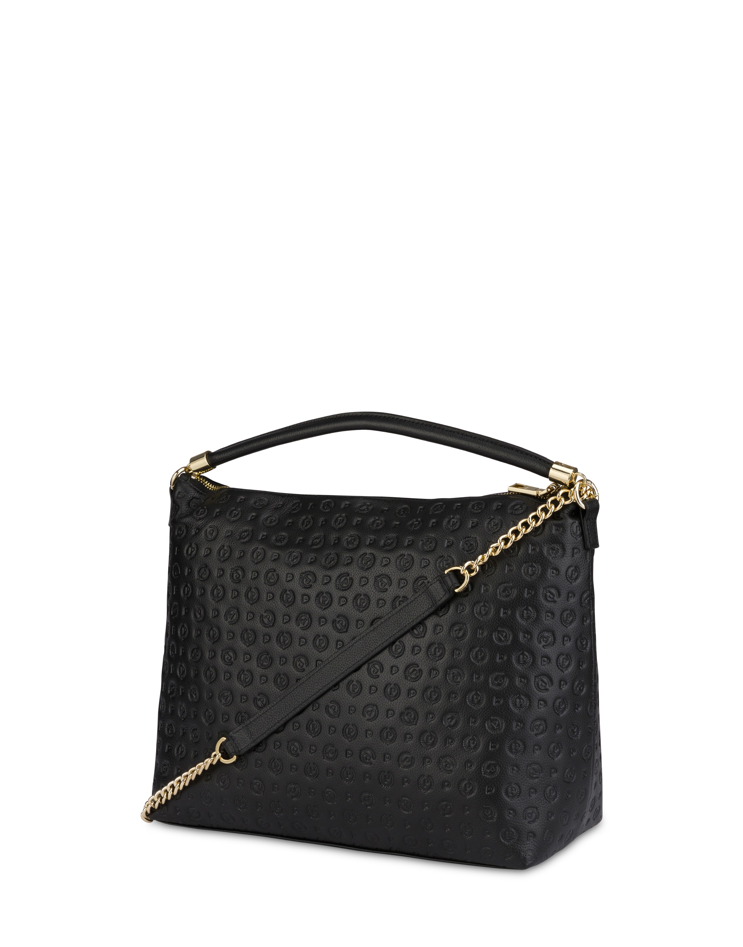Large messenger bag made of soft calfskin for the new Heritage Logo Embossed line. The bag can be carried in many ways: by hand, thanks to the removable tubular handle, over the shoulder, or across the body thanks to the golden chain shoulder strap. With a zipper closure. The timeless elegance that has always characterized the Heritage collections is emphasized by the iconic monogram with the P and the laurel wreath hot stamped on the leather.
