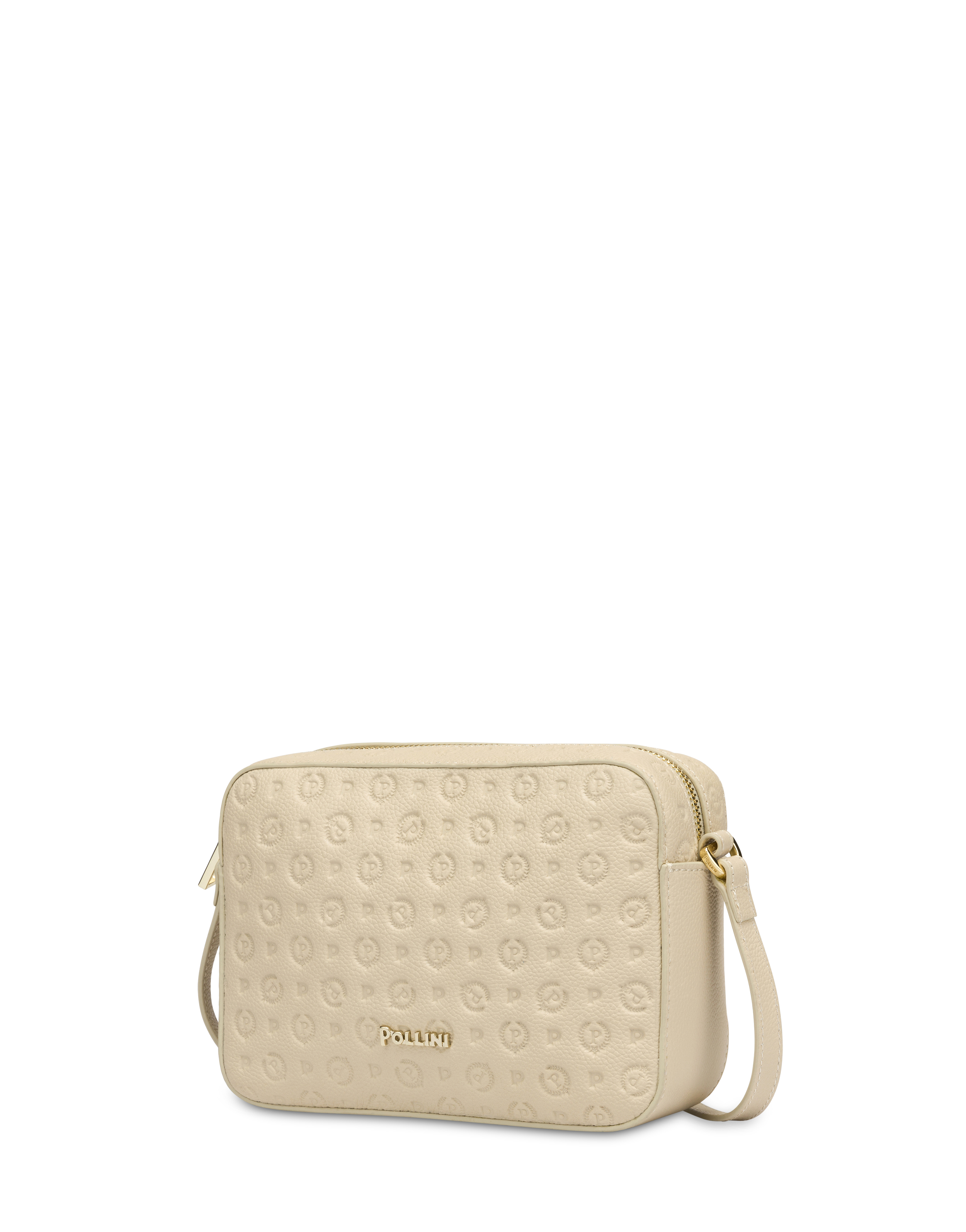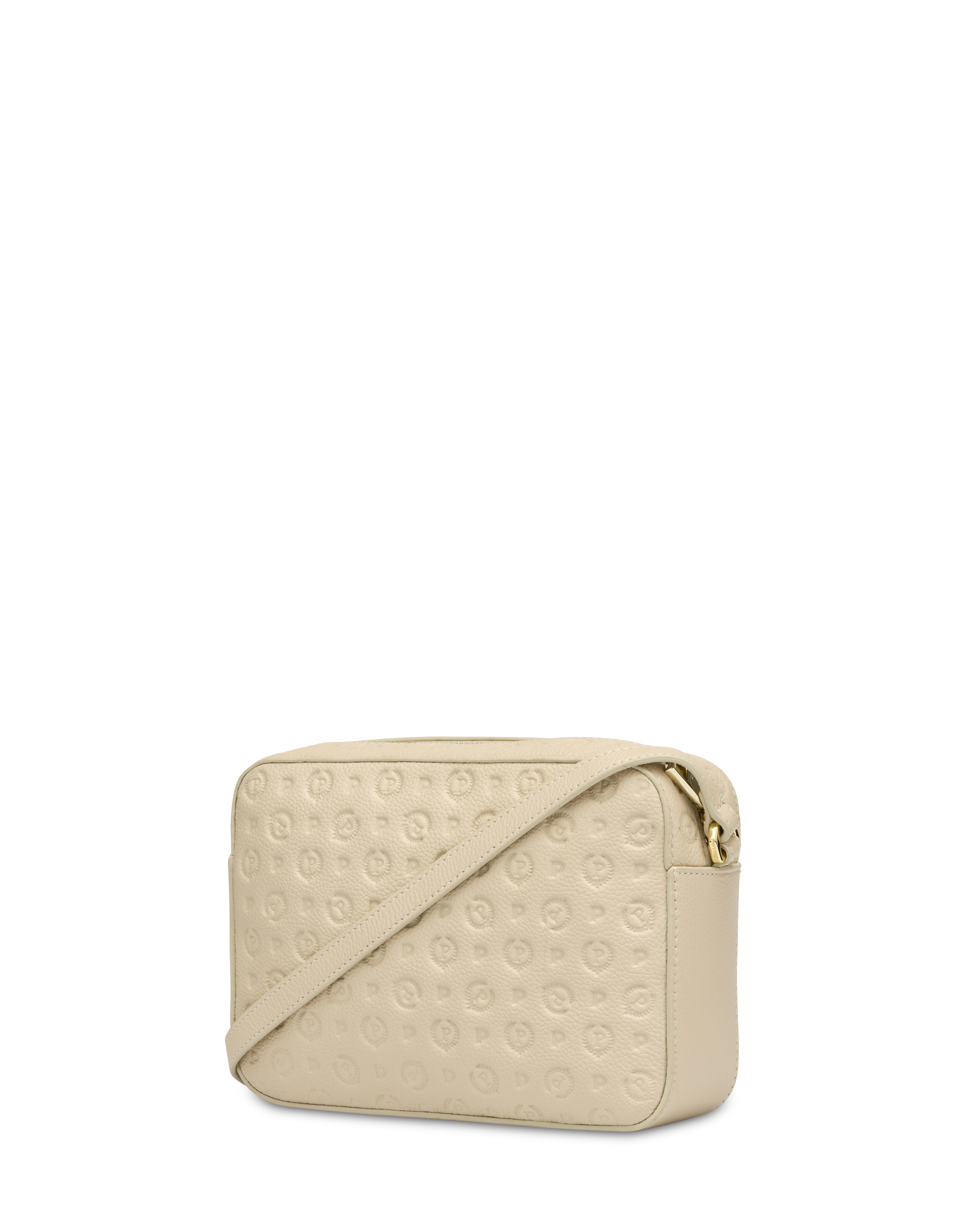 Medium-small camera bag made of soft calfskin for the new Heritage Logo Embossed line. Zipper closure, shoulder strap portability. The timeless elegance that has always characterized the Heritage collections is emphasized by the iconic monogram with the P and the laurel wreath hot stamped on the leather.