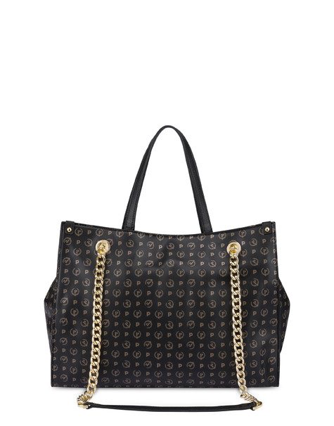 Convenient shopping bag made for the exclusive Heritage Soft Touch capsule collection. With a soft, unstructured shape, it features an embossed print effect, which gives softness and three-dimensionality to the touch. The handles, in leather and golden chain, are interchangeable, constituting a decorative and functional element at the same time. Carried under the shoulder. Galvanic gold snap hooks.