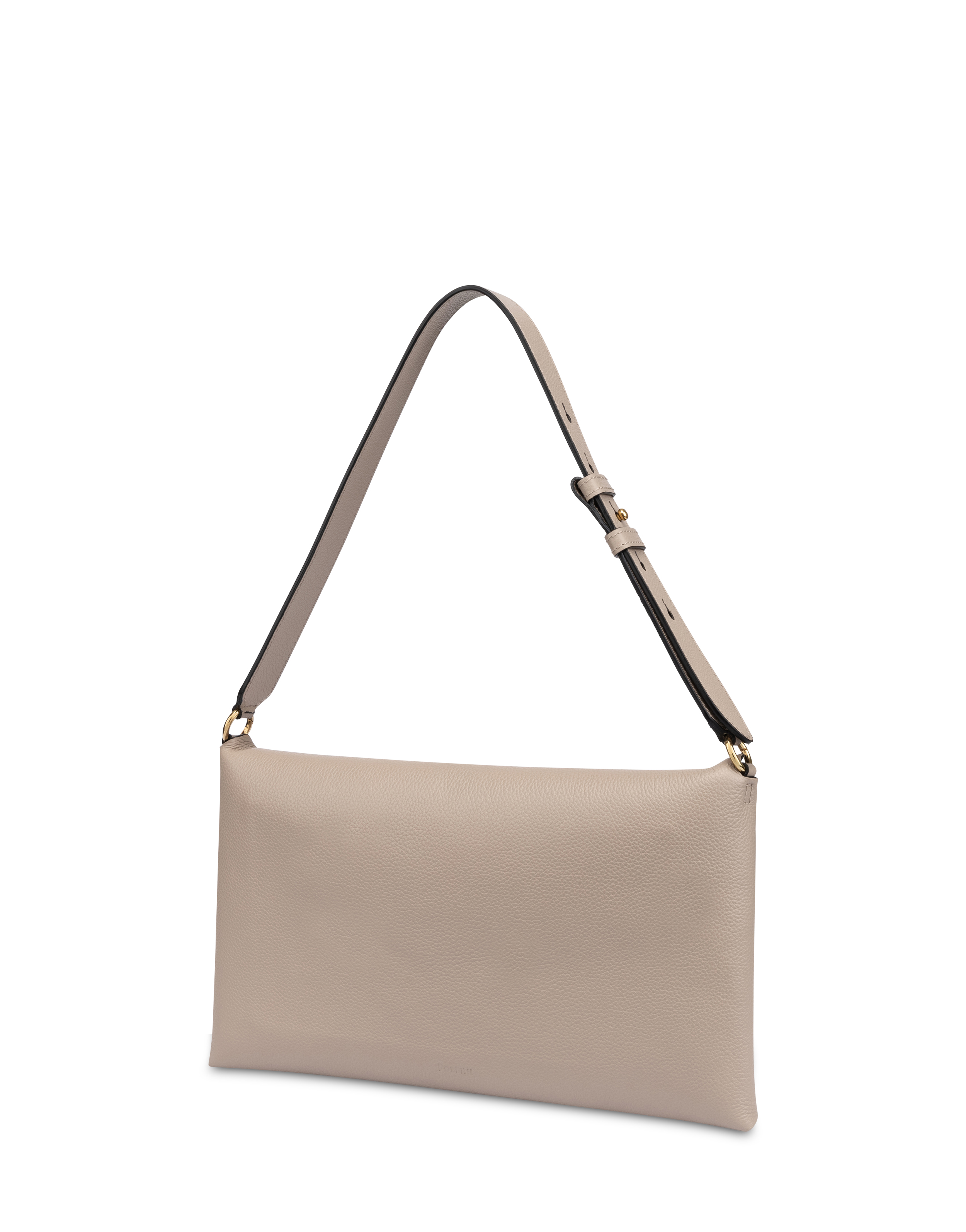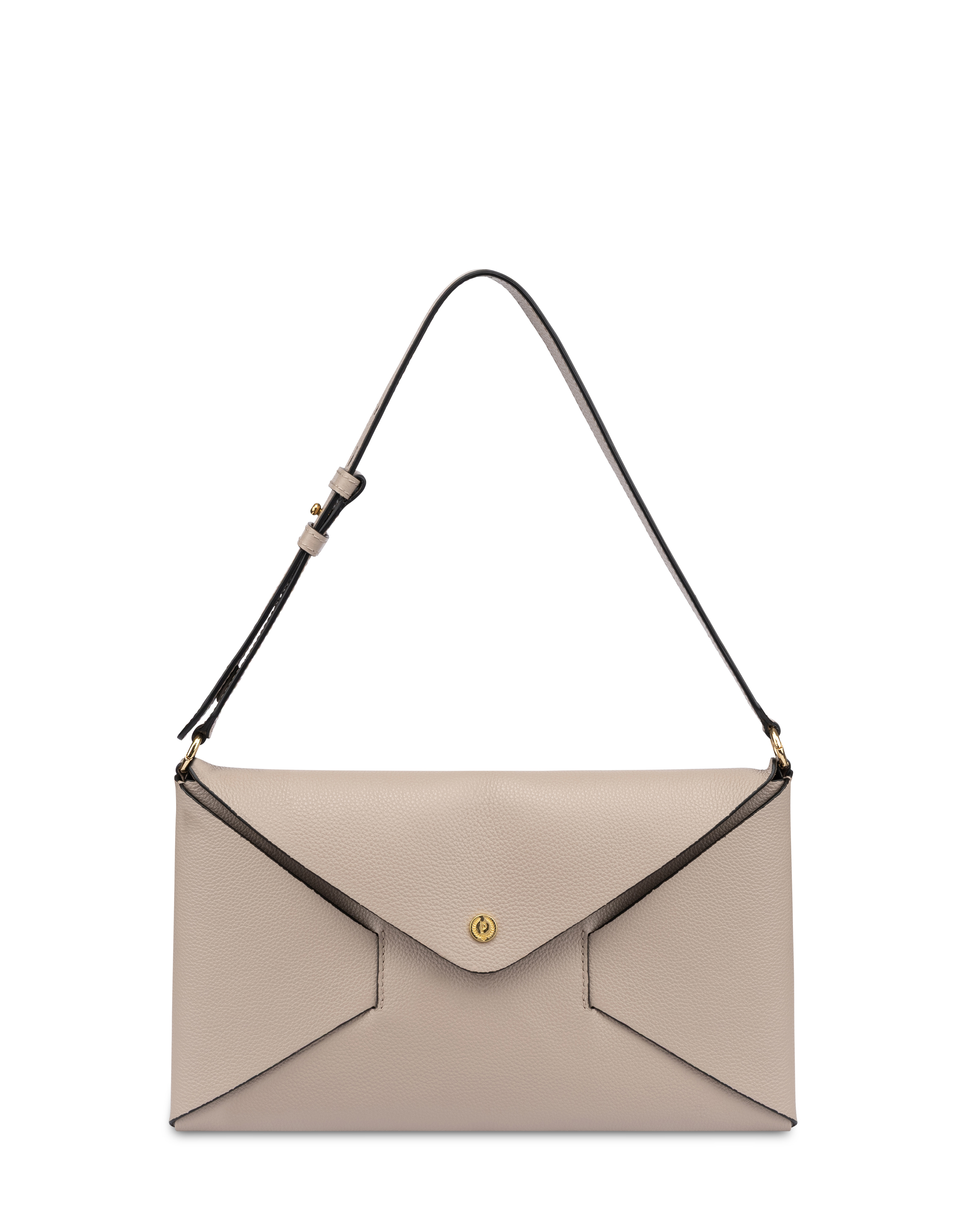 Bold style with a versatile soul. Made of grained calfskin, this shoulder bag is equipped with a removable and adjustable sliding shoulder strap with cufflinks, for dual carrying styles by hand or over the shoulder. The unlined interior features an open pocket and a leather logo label. The magnetic closure and the 'P laurel' logo stud with a gold-plated finish complete the design with a distinctive hint of shimmer.