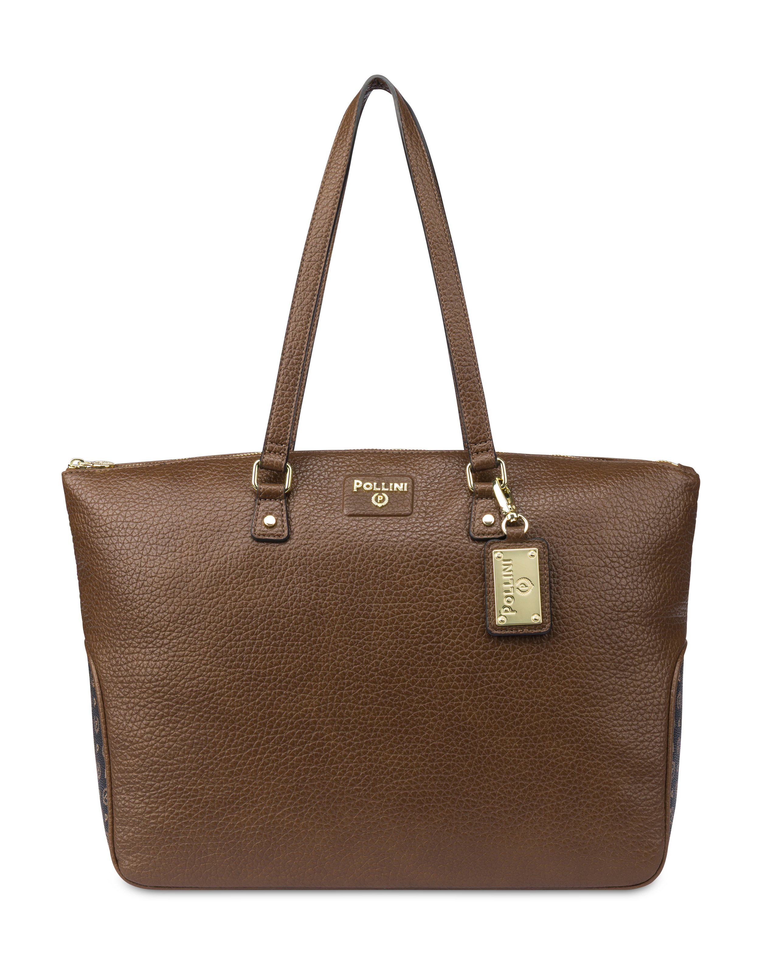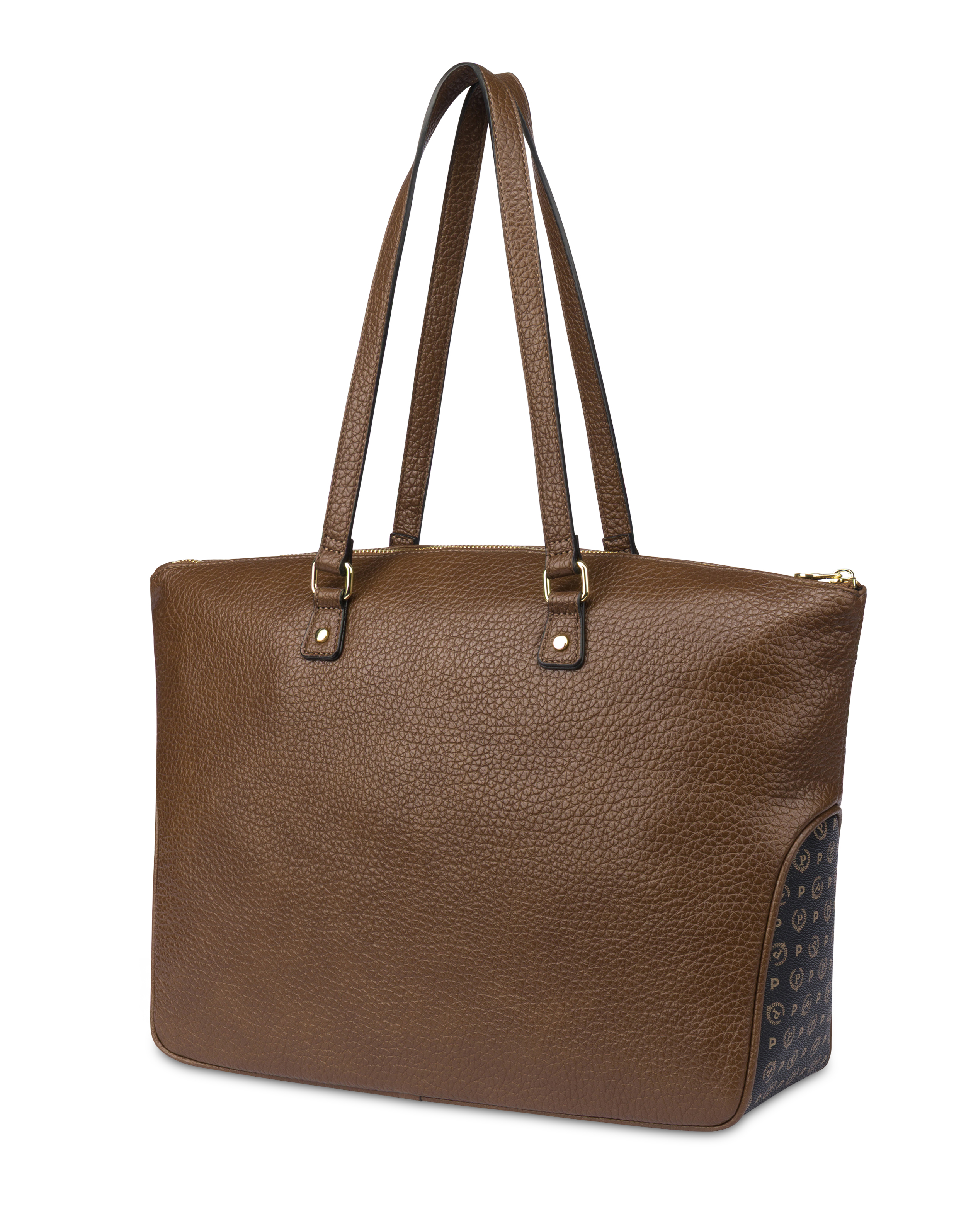 Modern and sophisticated, the Naja Tote Bag stands out for its balance of style and functionality. Made of a mixture of premium materials featuring the Heritage motif, it is enhanced by the iconic maxi piping that emphasizes its oversized silhouette. Spacious and practical, it features a zip closure, double handles, and a lined interior with a zip pocket. The design is completed by a removable charm with a golden Pollini plaque, a detail that adds a distinctive hint of brilliant sophistication.