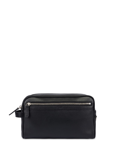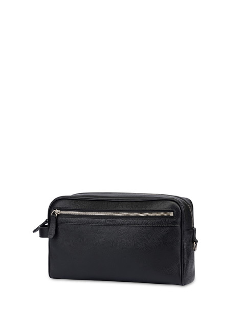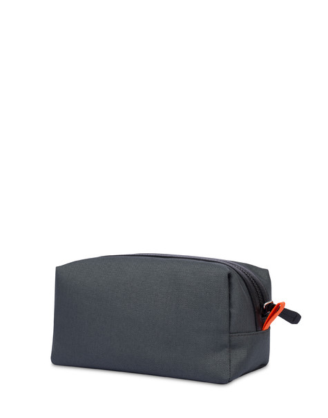 Beauty case in tessuto spalmato idrorepellente. Spazioso e ben organizzato, il modello è completato da un'ampia tasca frontale a zip e manigliotto laterale.