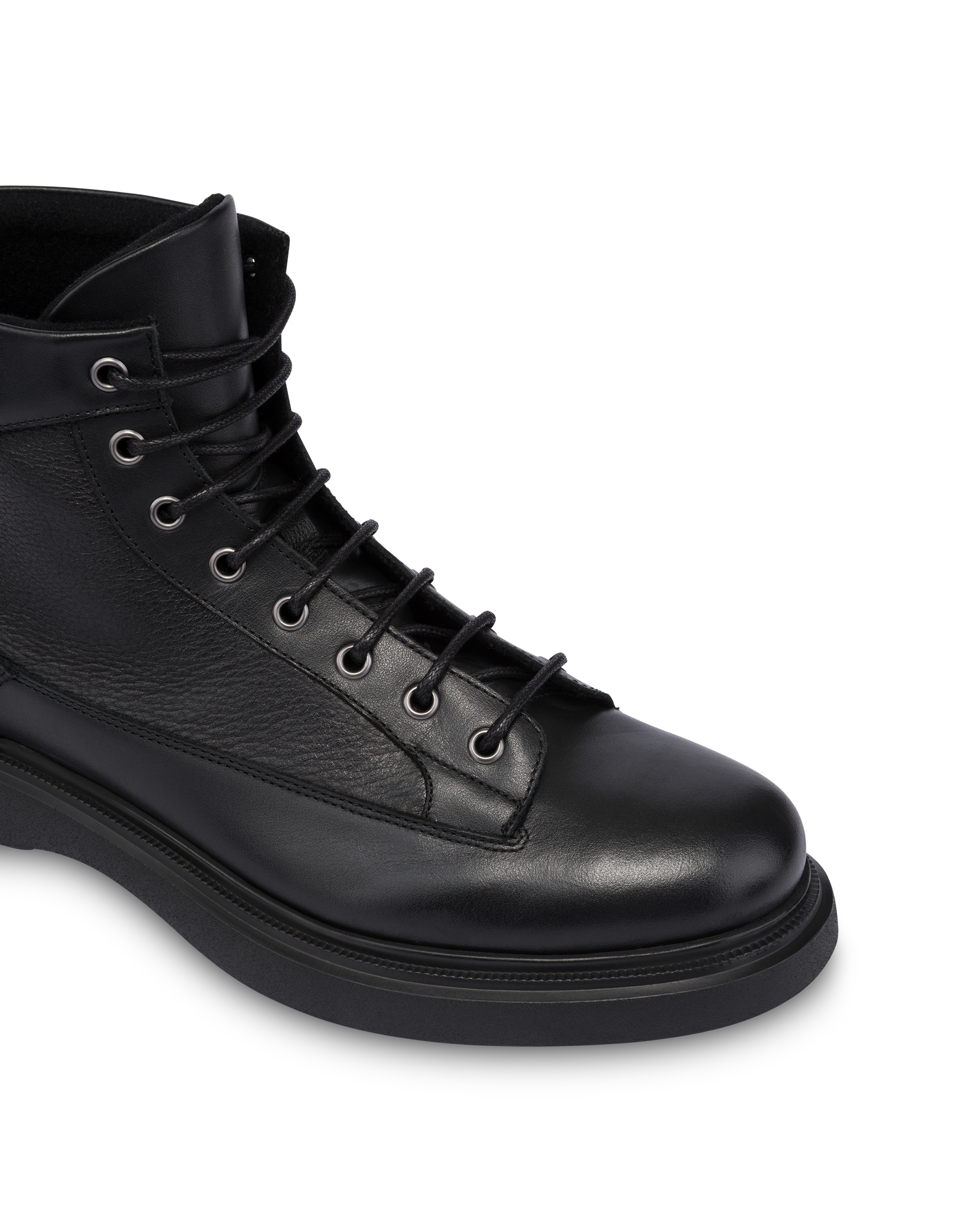 Stile e robustezza si incontrano nel Boot Riverside, realizzato in pregiato vitello bottalato con raffinati dettagli in vitello liscio su tallone e punta. Il design deciso è completato da una chiusura stringata che assicura una calzata stabile e personalizzabile. La punta tonda aggiunge un tocco classico e versatile, mentre il fondo in gomma con battistrada carrarmato garantisce aderenza e comfort su ogni superficie. Perfetti per un look urbano dal carattere deciso, senza rinunciare alla qualità artigianale e alla praticità quotidiana.