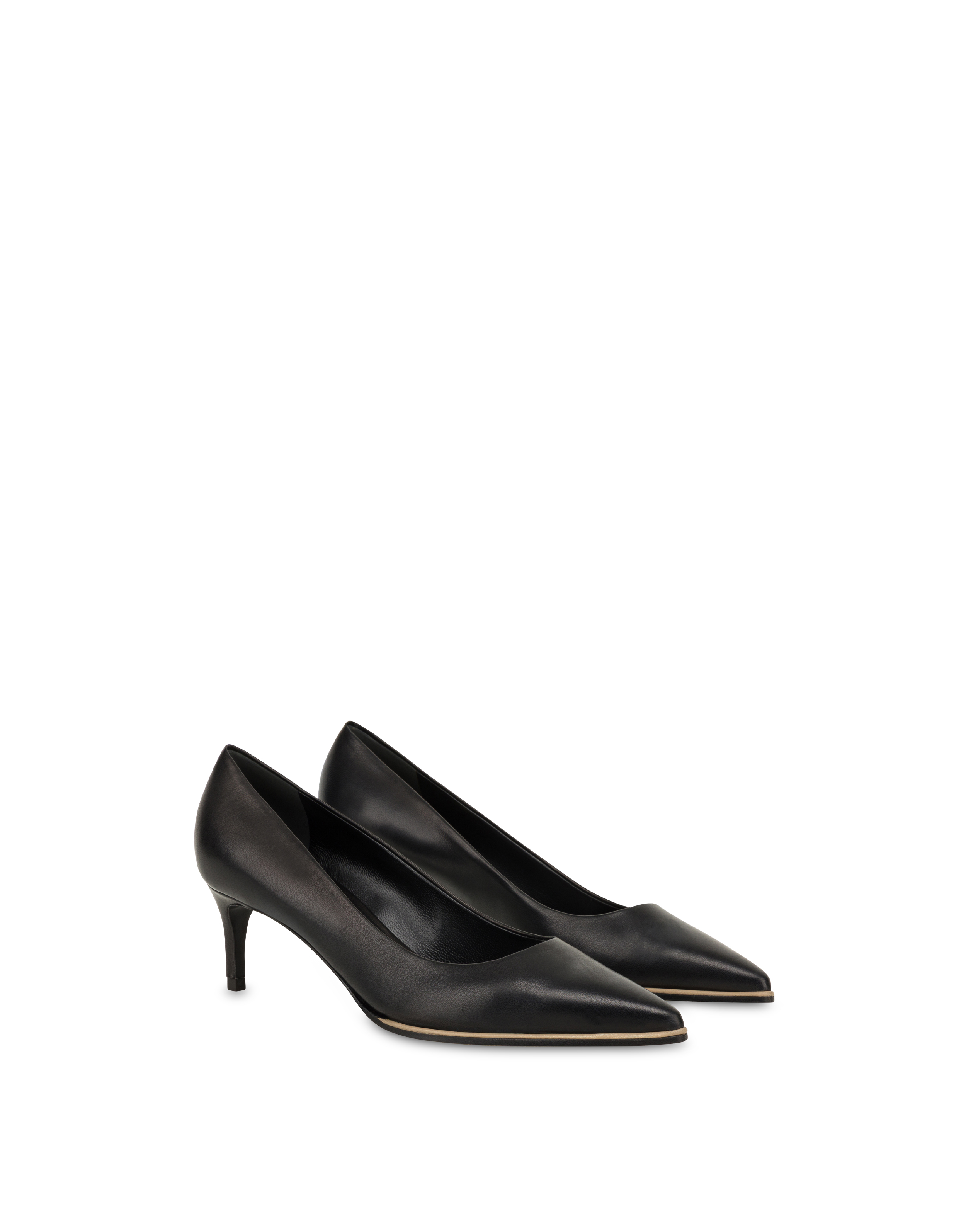 Reinterpretazione contemporanea della classica pump femminile con tacco a stiletto. Tomaia in nappa dalle linee essenziali. I tagli tradizionali sono arricchiti dalla suola bicolore con piccolo guardolo di pelle a contrasto, ispirati a una versione elegante dell'iconica suola cremino.