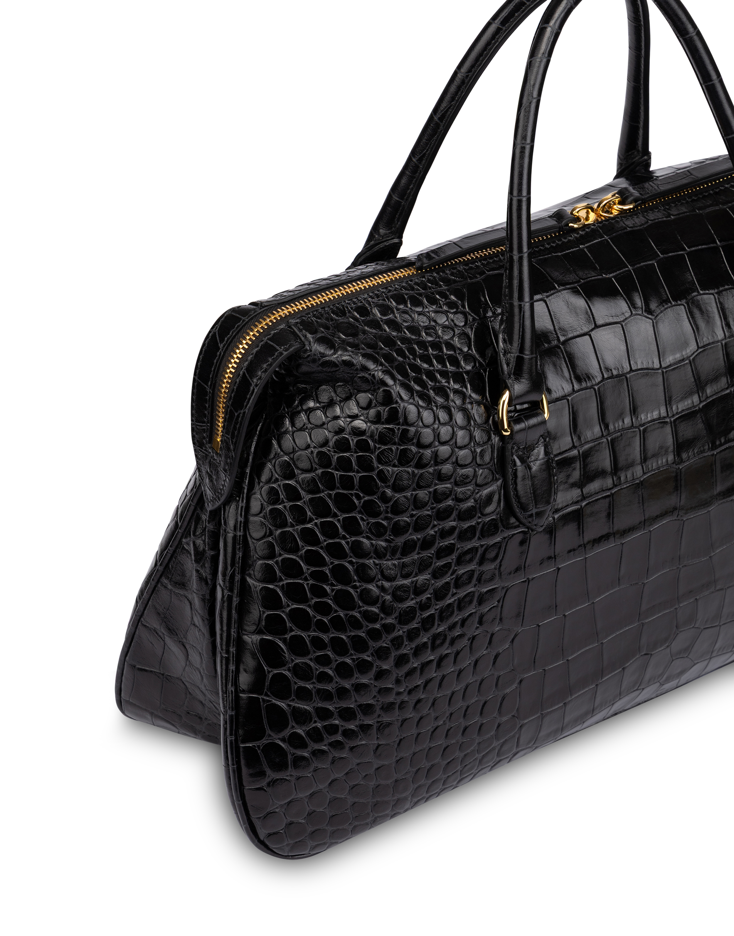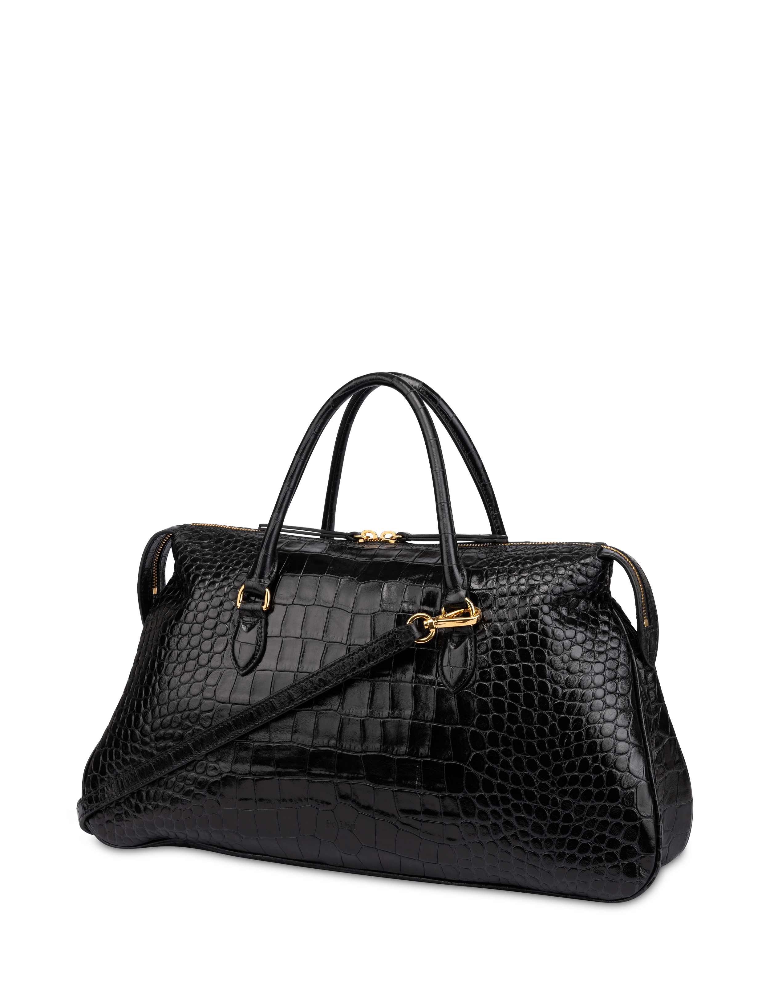 Eleganza strutturata e texture decisa. Questa borsa in vitello stampa cocco con riporti in pelle liscia è pensata per uno stile raffinato ma versatile. I manici tubolari ad abbattimento e la tracolla regolabile a scorrimento con gemelli garantiscono massima funzionalità. L’interno foderato, con tasca con zip e label logata in pelle, è completato da dettagli in galvanica gold che illuminano il design con discreta eleganza.