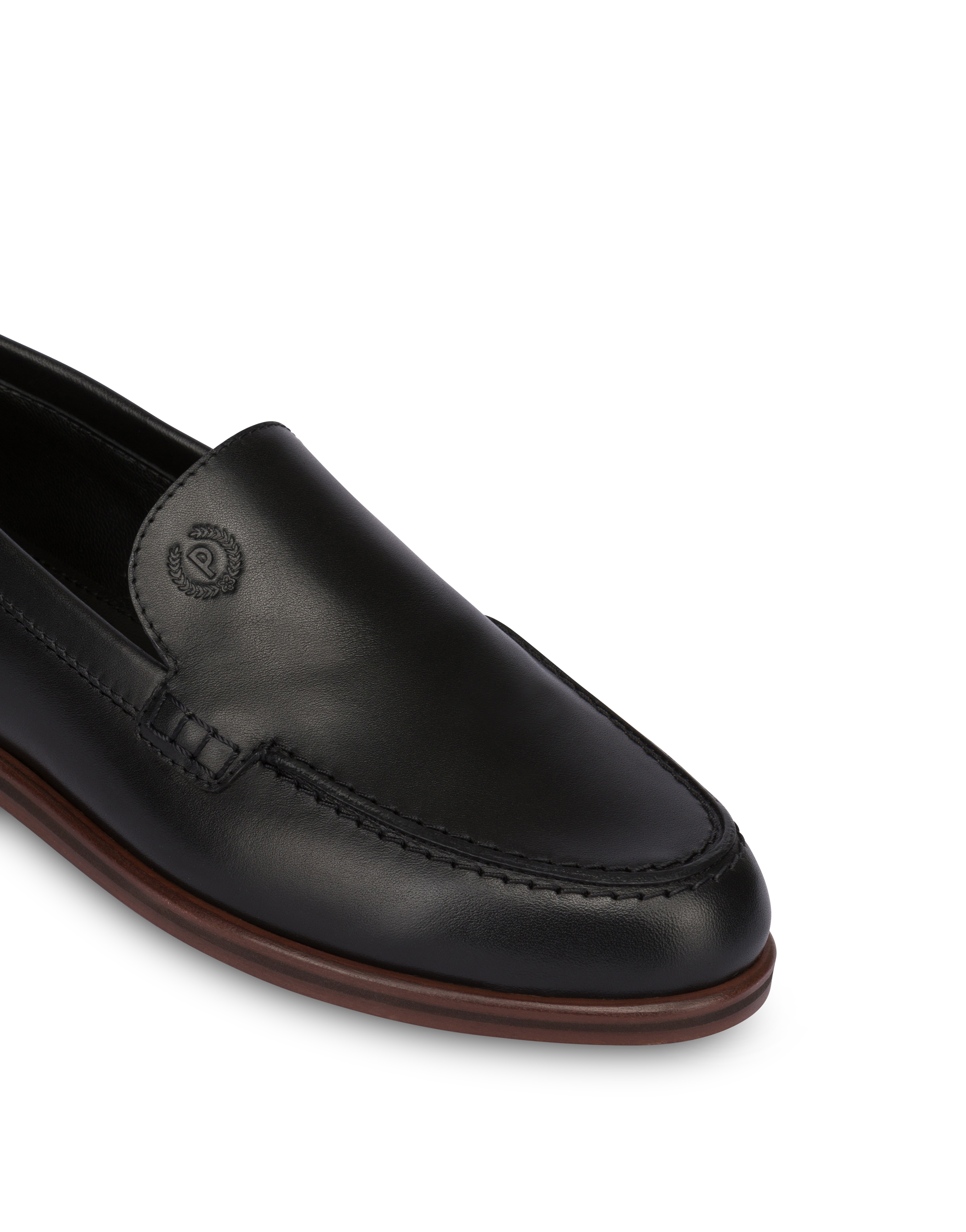 Mocassini in vitello lissato con cuciture artigianali, logo P-alloro impresso a caldo sulla vaschetta e l'inconfondibile suola 'cremino', per uno stile senza tempo.