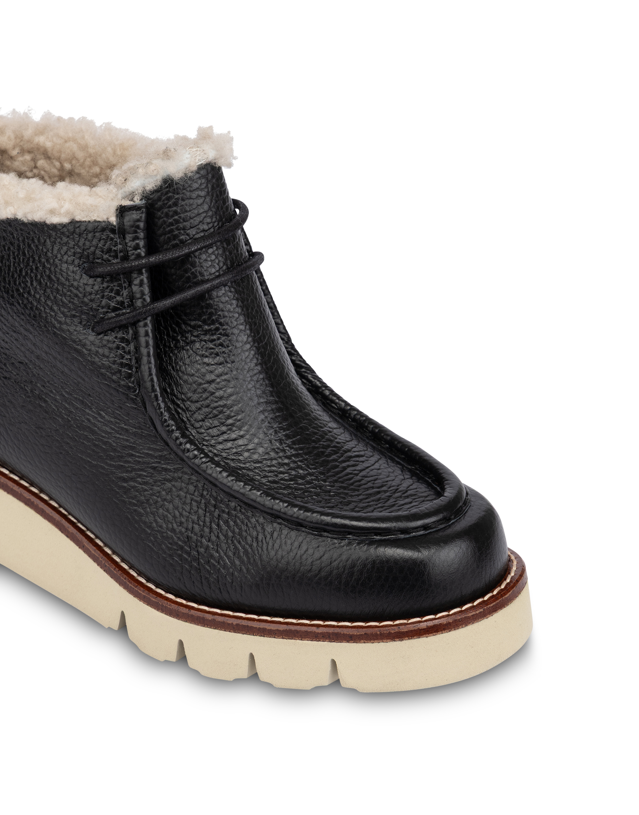 Il polacchino Dublin unisce design essenziale e comfort superiore. Realizzato in vitello morbido, è rifinito con una fodera in montone che avvolge il piede con calore e morbidezza. Il fondo in EVA extralight assicura leggerezza e ammortizzazione, per una camminata fluida e senza fatica. Un modello versatile e contemporaneo, perfetto per affrontare la stagione con stile e praticità.
