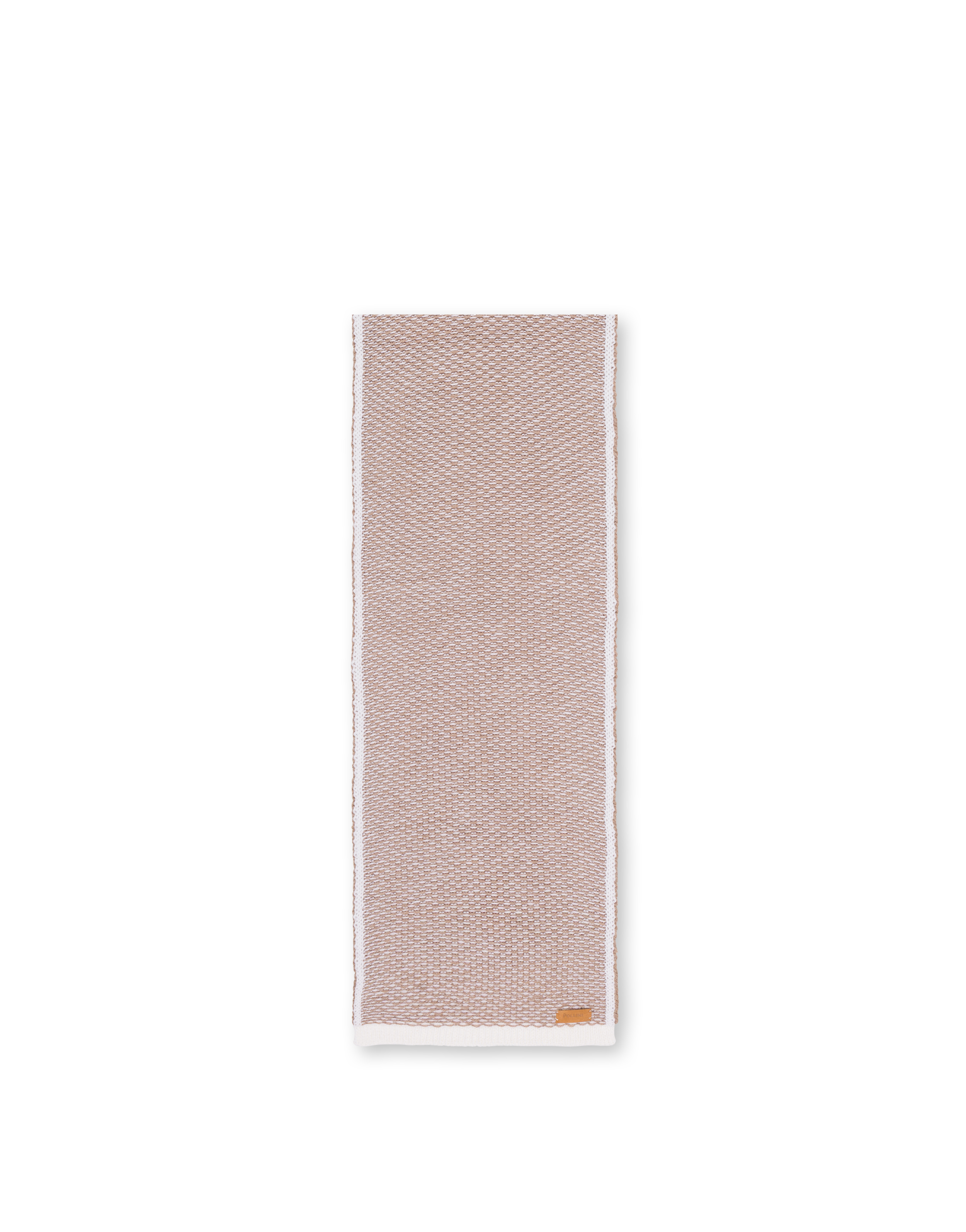 Sciarpa unisex in lana con trama a contrasto. Bordi tinta unita. Etichetta logata in pelle sul bordo.