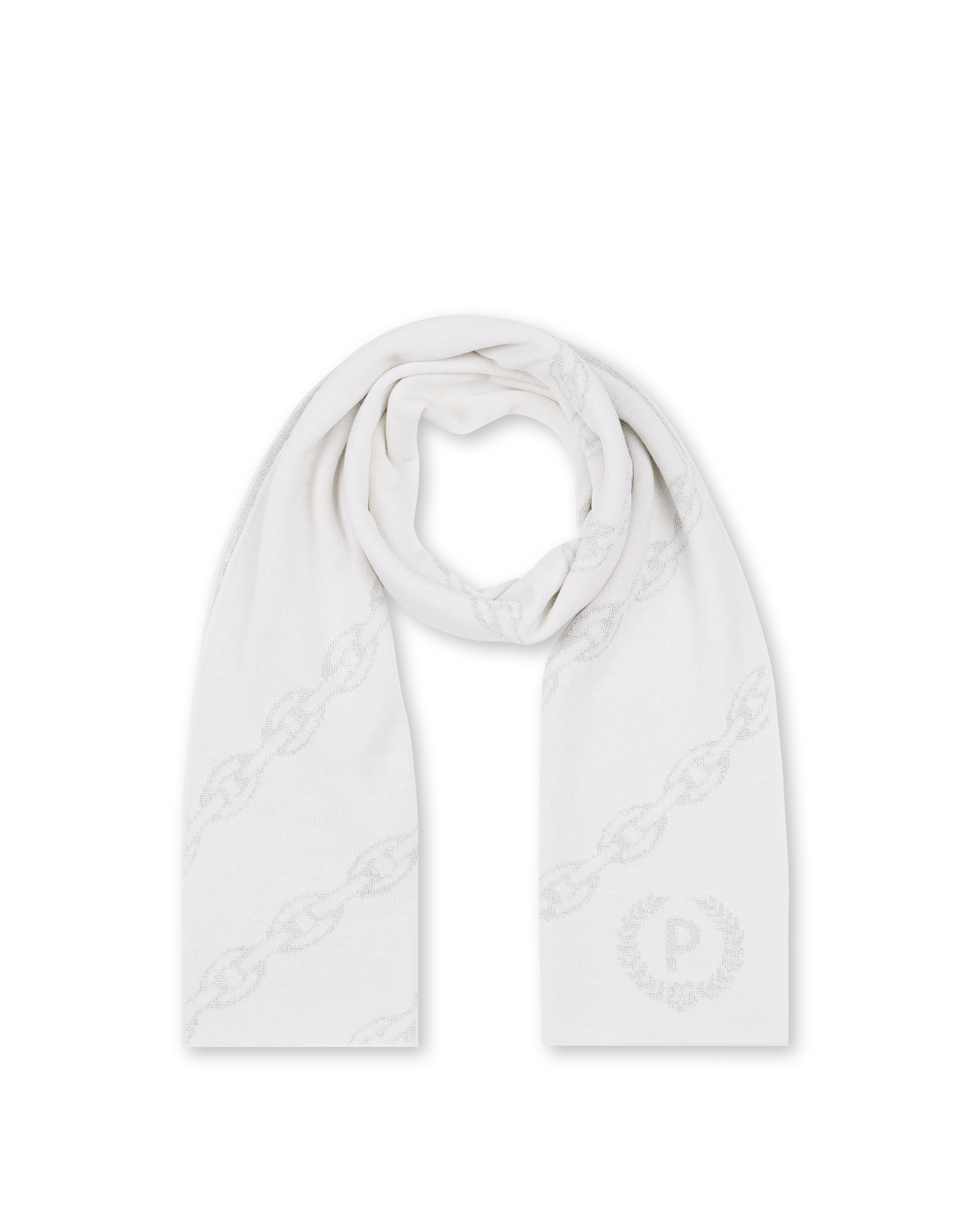 Sciarpa In Misto Lana Con Stampa Catene Bianco