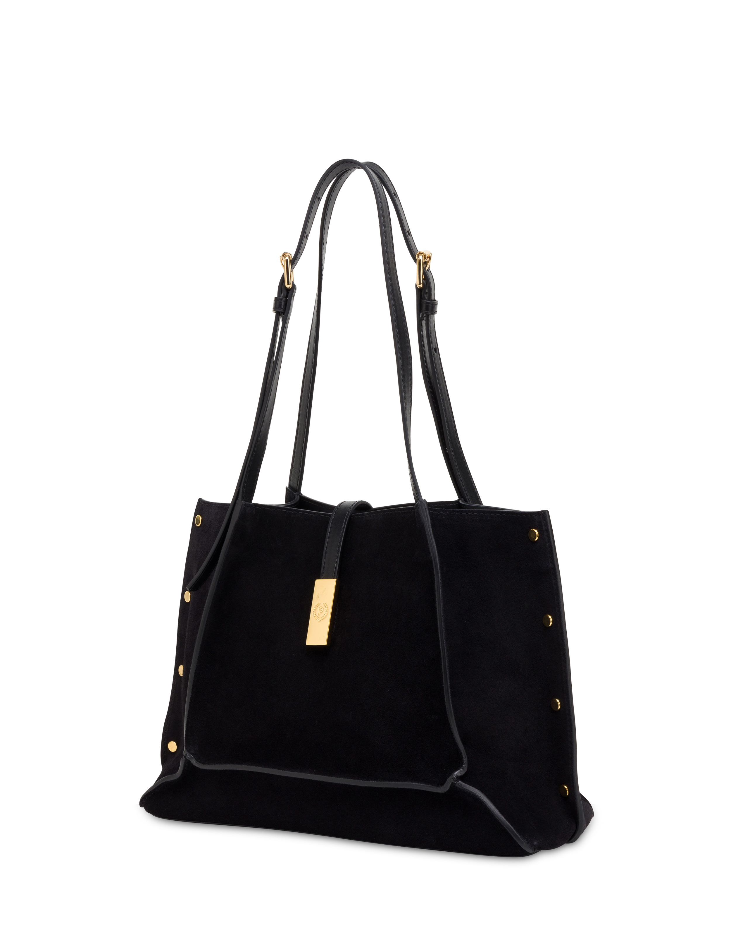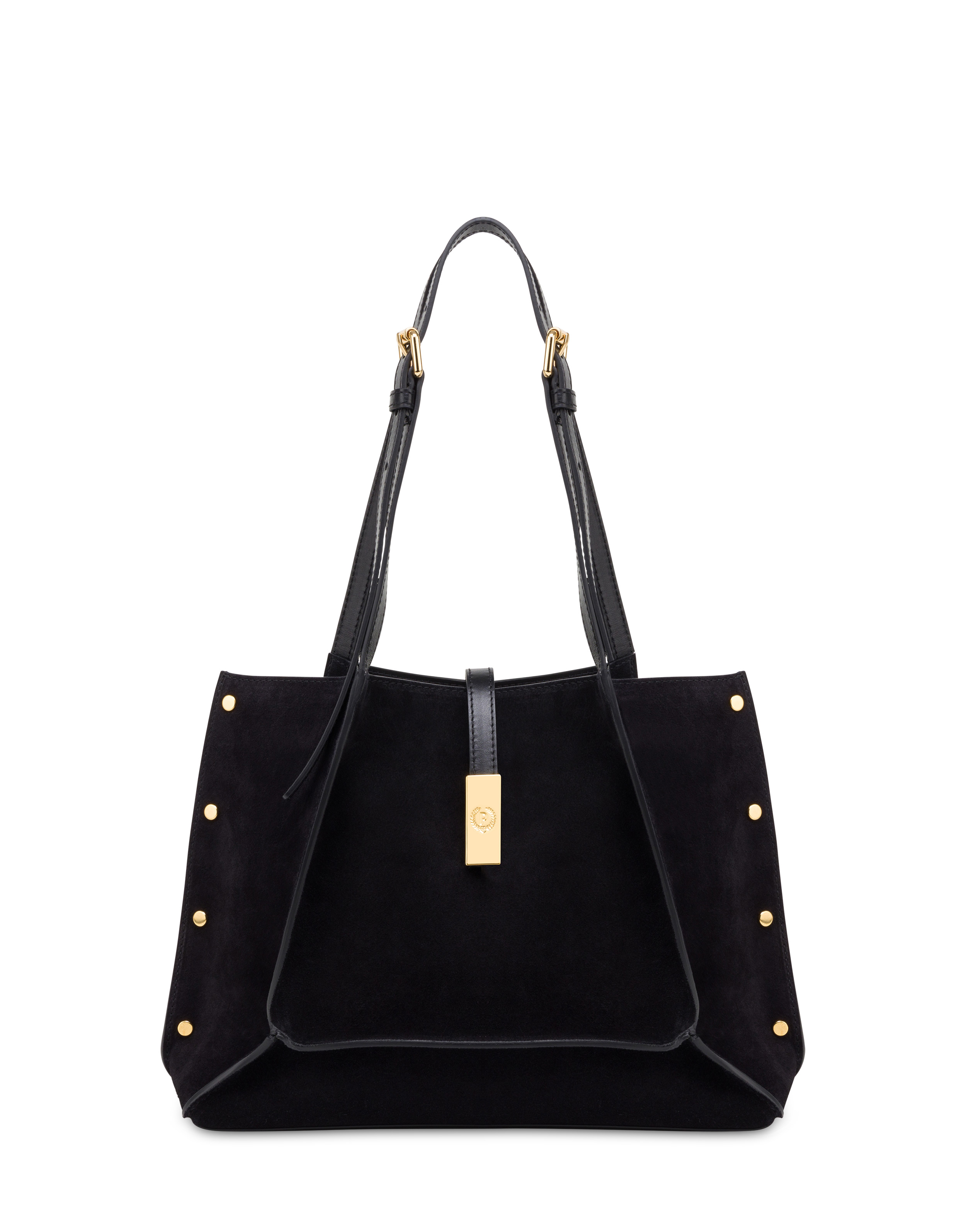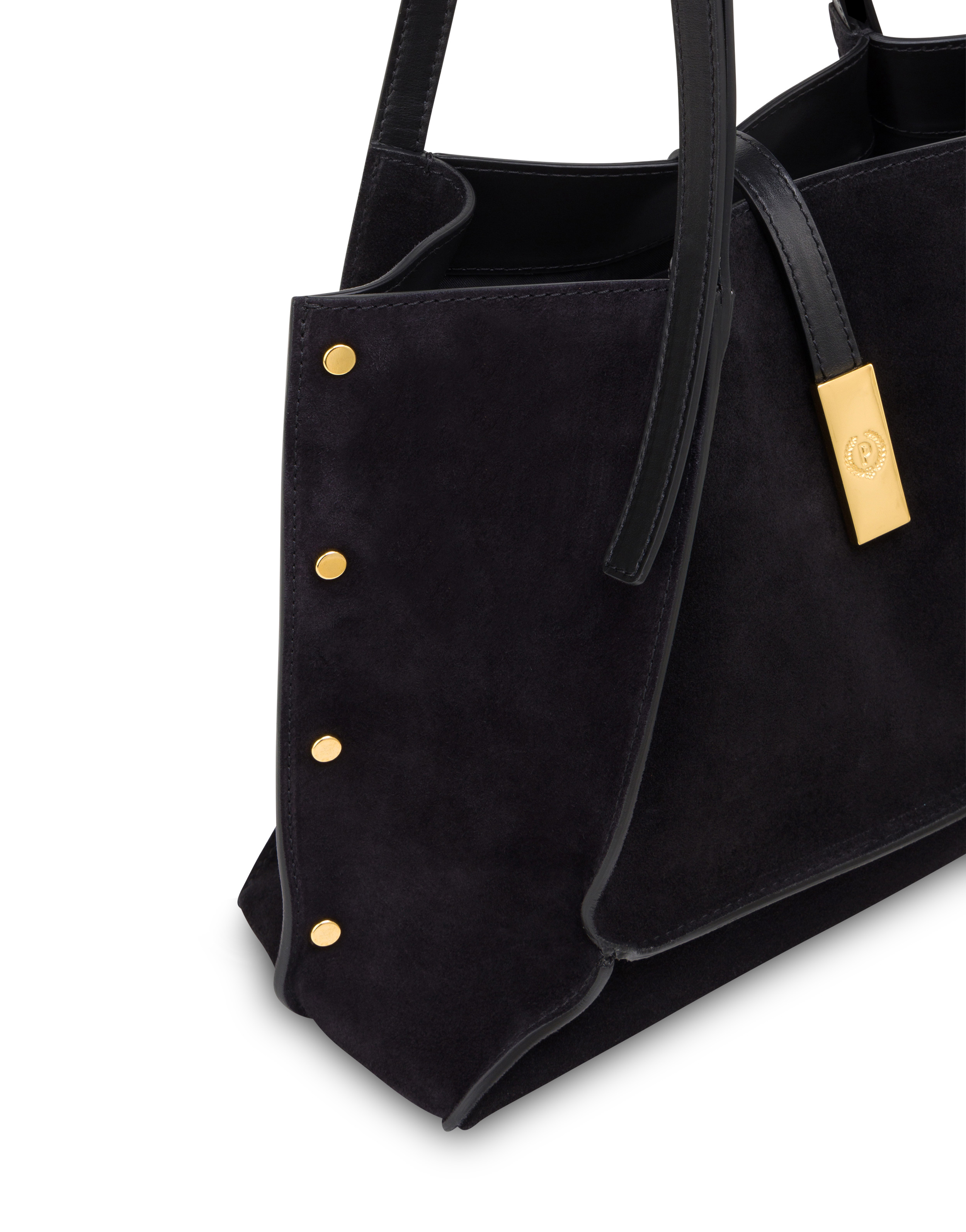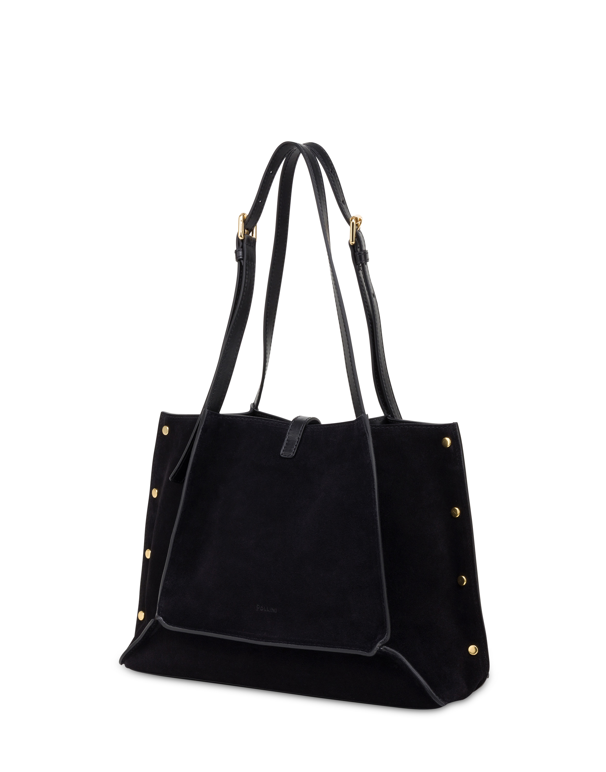 Questa shopper, dimensione small, rappresenta l'eccellenza artigianale e il know-how distintivo del brand storico Pollini. La sua costruzione unica e le linee essenziali conferiscono personalità al modello. Le borchie aggiungono un tocco prezioso al design. Manici regolabili per doppia portabilità. Definisce il look il cinturino di chiusura con placca logata.