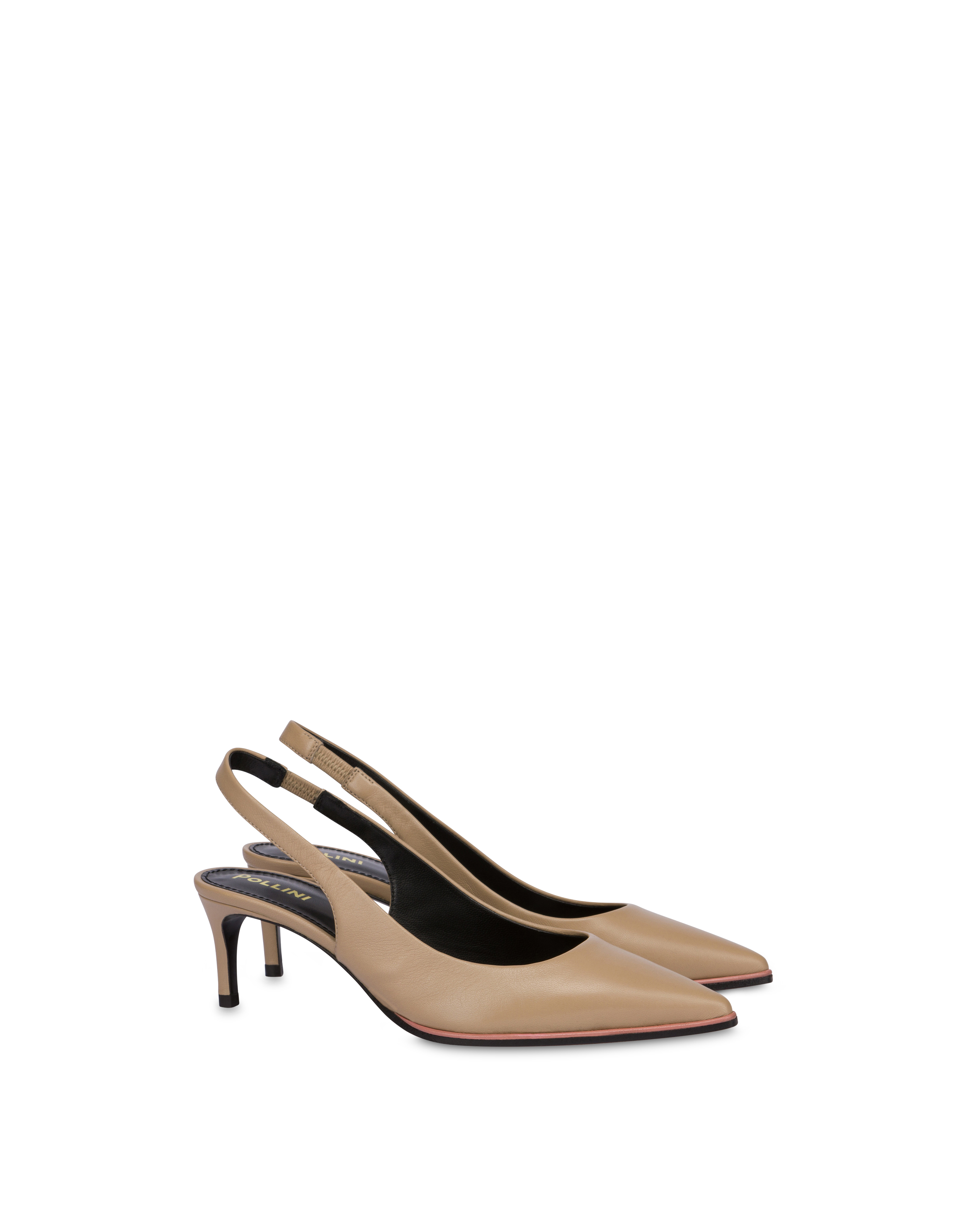 Reinterpretazione contemporanea della classica slingback femminile con tacco a stiletto. Tomaia in nappa dalle linee essenziali. I tagli tradizionali sono arricchiti dalla suola bicolore con piccolo guardolo di pelle a contrasto, ispirati ad una versione elegante dell'iconica suola cremino.