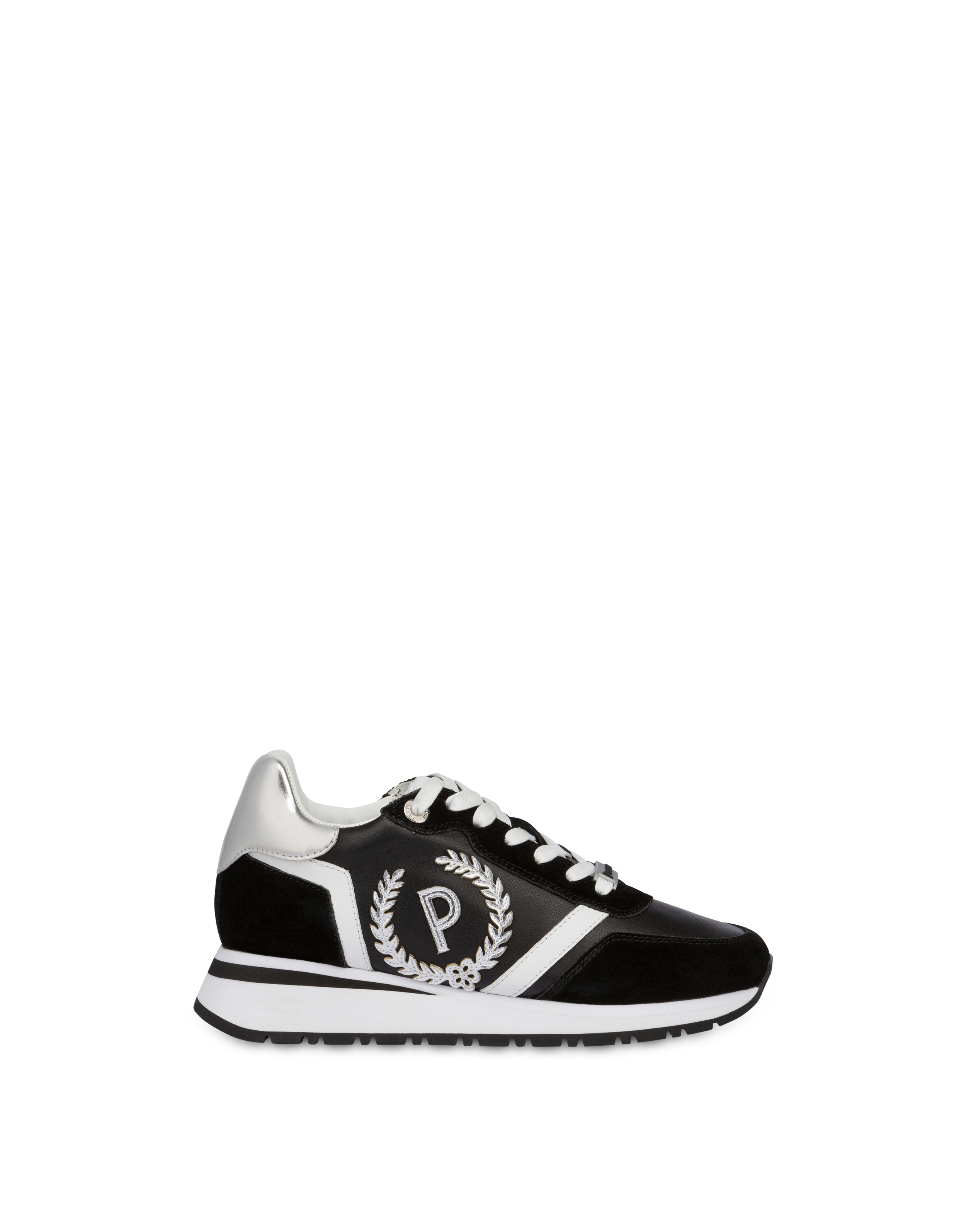 Sneaker Speedy con tomaia di ispirazione vintage realizzata con un mix di materiali e dettagli laminati. Logo P-alloro applicato sul lato esterno della tomaia.