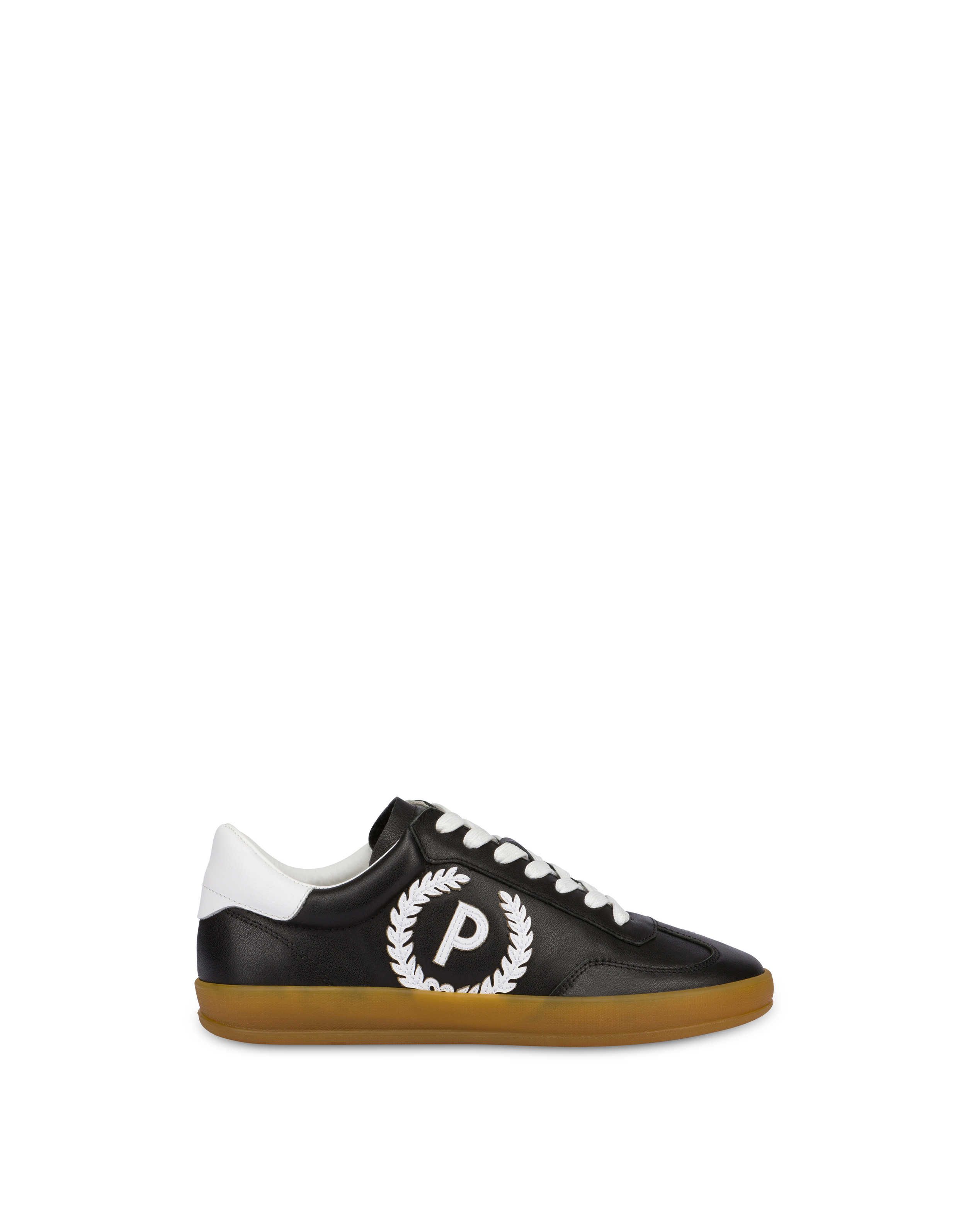 Sneaker in pelle dal gusto retrò. Classico fondo a cassetta con effetto gel in color miele. Patch logo P-alloro sul lato esterno della tomaia.