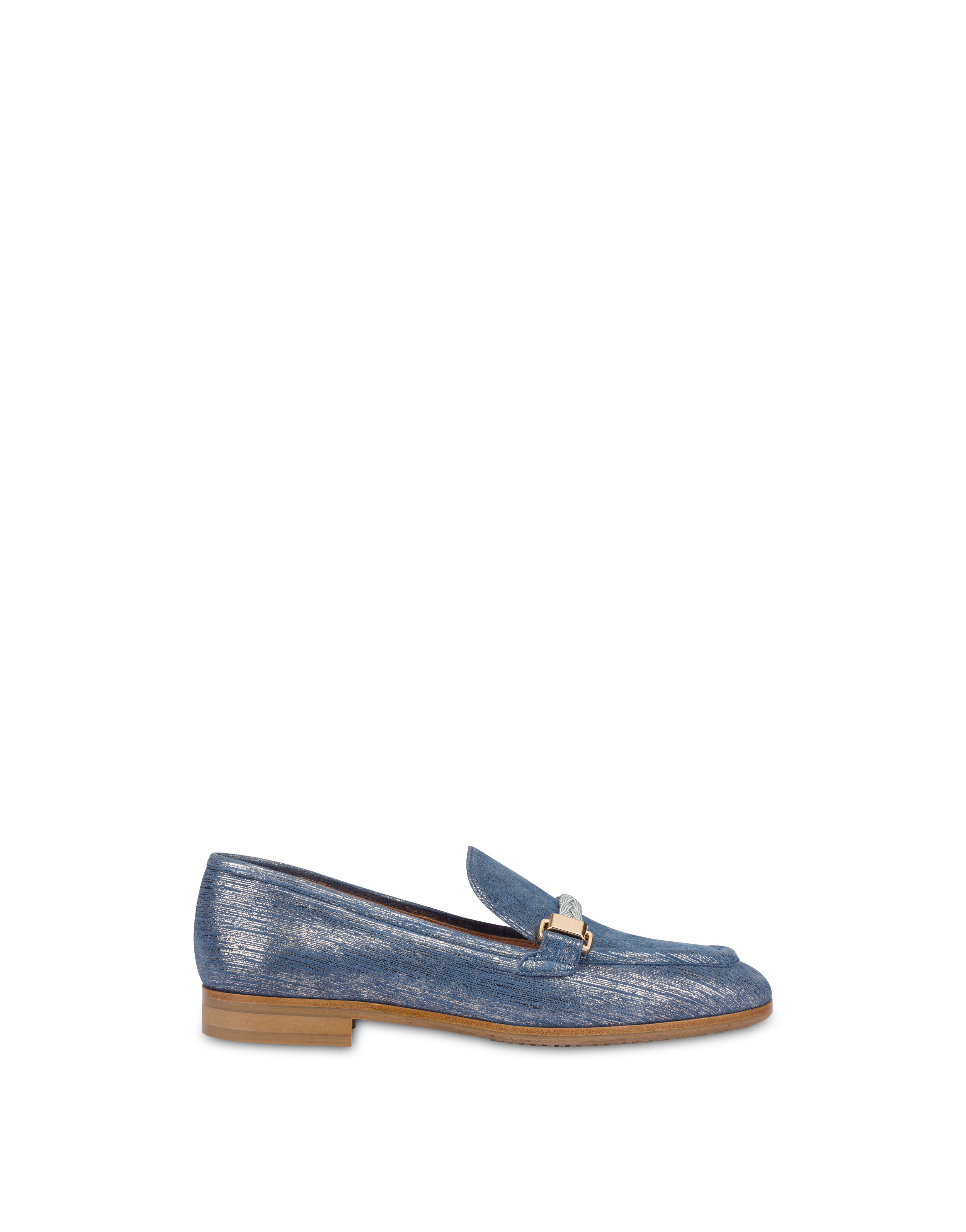 Mocassino in camoscio laminato impreziosito da un morsetto intrecciato in tessuto. Morbidezza e flessibilità̀ sono le parole chiave che descrivono al meglio le calzature del progetto Pollini Flexy che si contraddistinguono per la leggerissima suola in gomma. Il packaging è creato ad hoc ed oltre alla scatola personalizzata, Pollini omaggia l’esclusiva shopper in cotone organico logata con chiusura a coulisse e doppi manici, da utilizzare come tote bag o porta-scarpe.