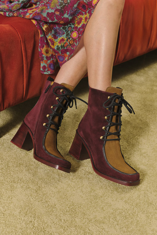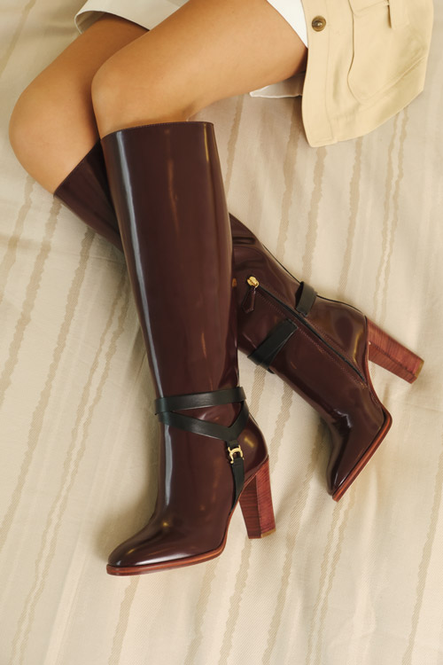 Lo stivale Cavaliere senza cuciture, lanciato all’inizio degli anni anni ’70, per l’occasione è proposto sia in vitello bordeaux extra shiny sia con una lavorazione in materiale riciclato effetto pixel multicolor. Una selezione di borse svela l’anima versatile di Pollini e completa la collezione.