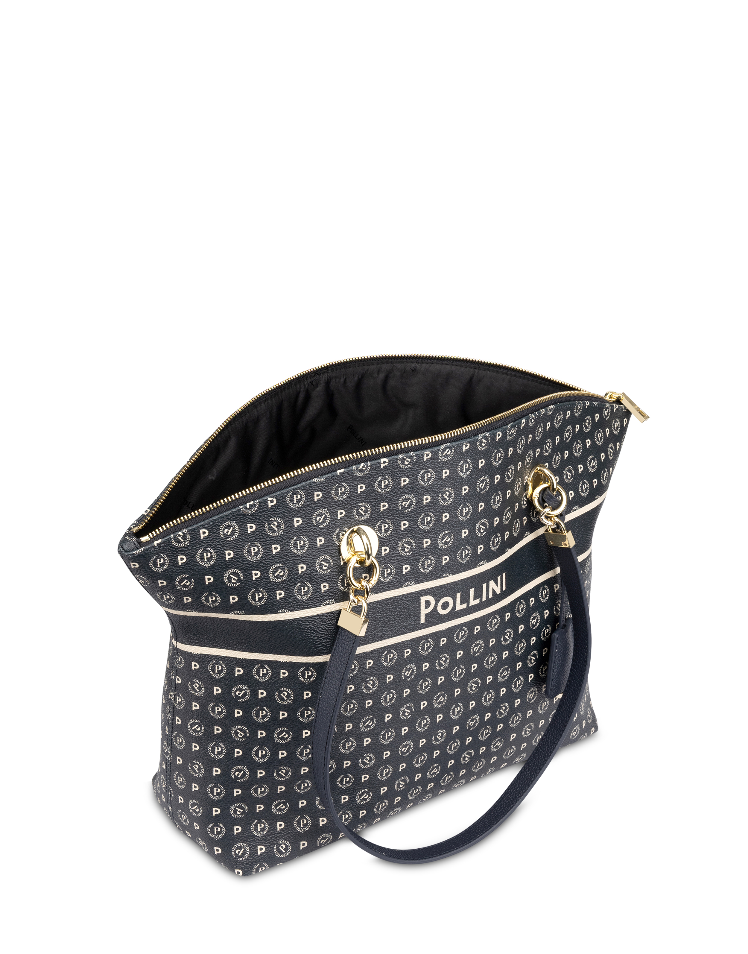 Pratica borsa Tote realizzata per l'esclusiva capsule collection Heritage Marina, ispirata alle atmosfere estive marine. L’Heritage PVC assume un nuovo colore dato dalla combinazione dell’avorio con pattern blu mare. La borsa si caratterizza per il logo Pollini lettering posto sul quadrante frontale. Doppi manici intercambiabili e amovibili.